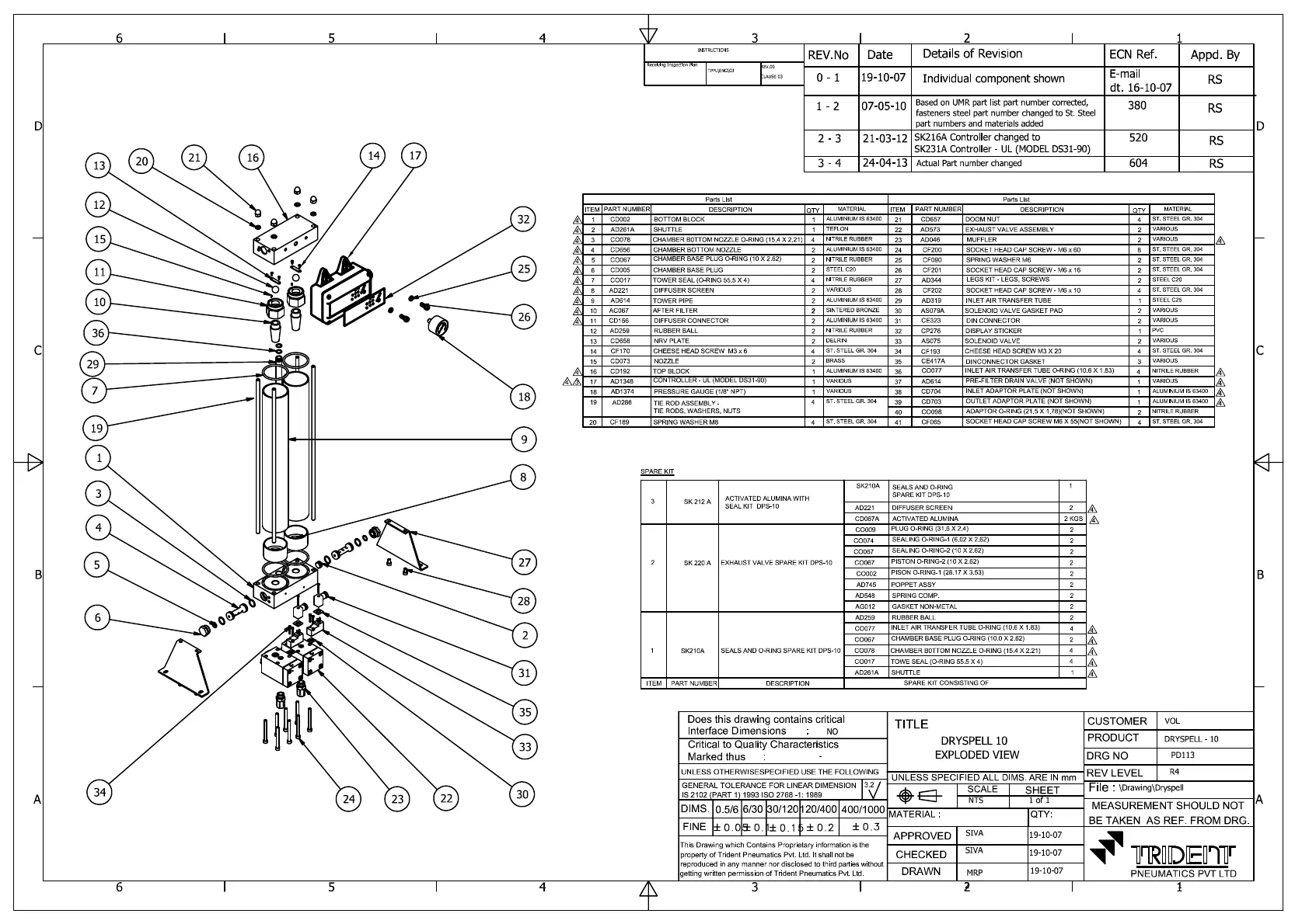 Trident Dryspell Series - Dryspell 10 Exploded View