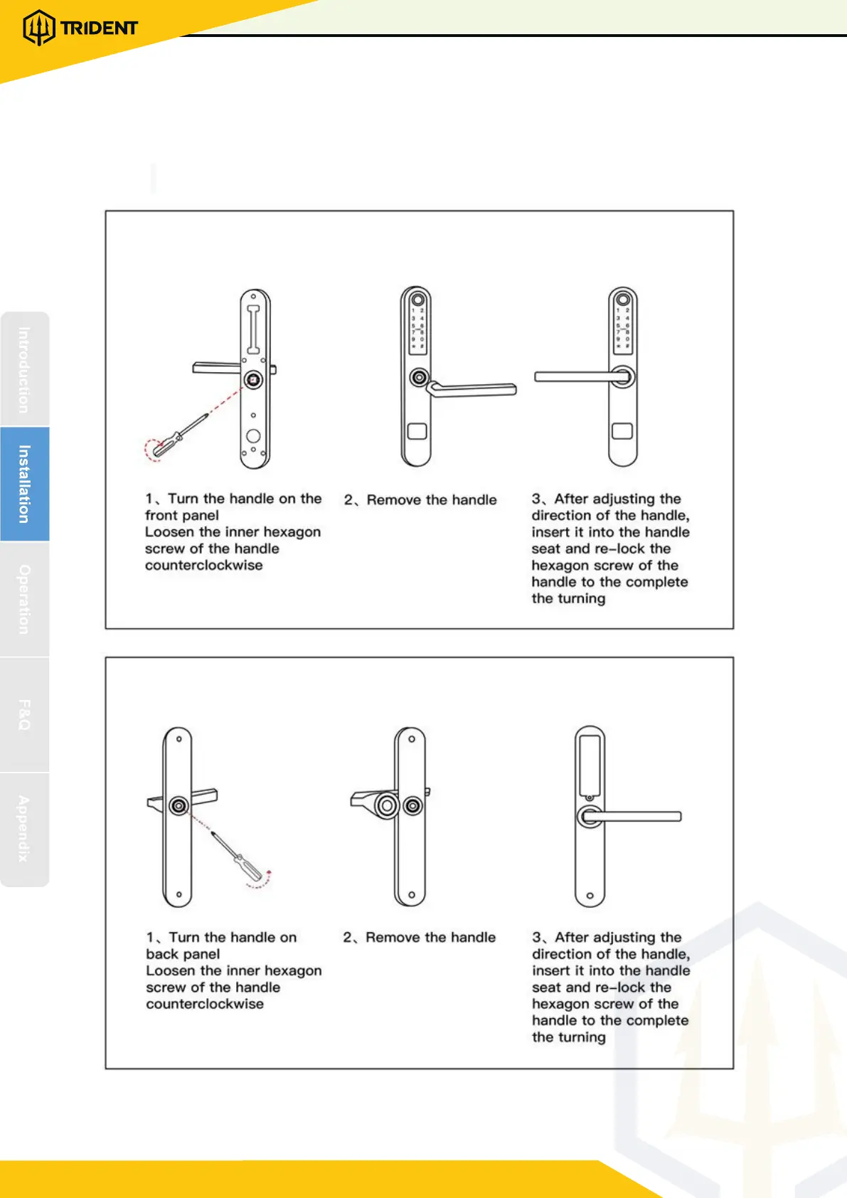 Trident MANTA PRO - Smart Lock Installation Guide; Handle Direction Adjustment