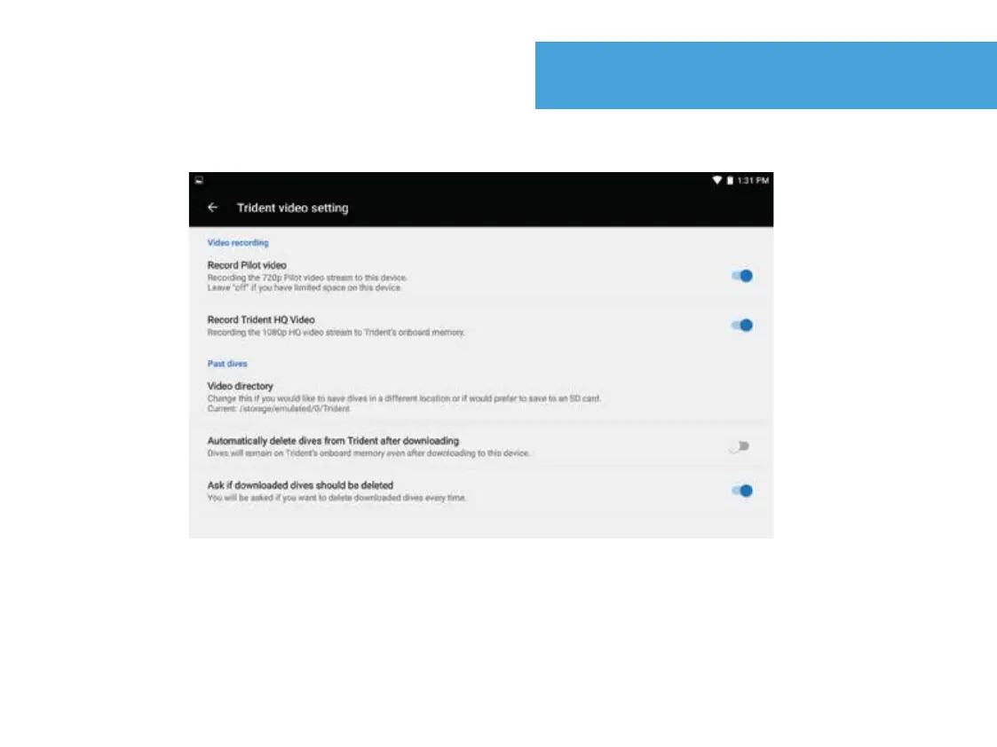 Trident’s on-board memory and will record the 720p pilot video to your device