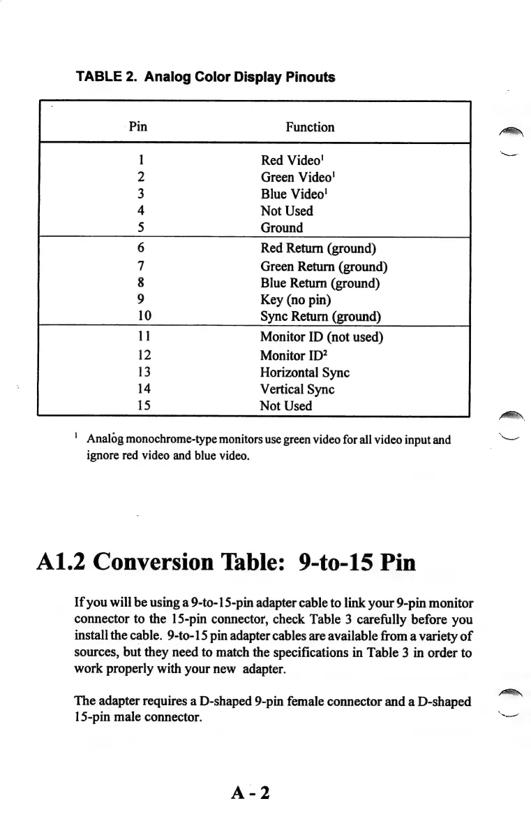 Trident TVGA8900CL - A1.2 Conversion Table: 9-to-15 Pin