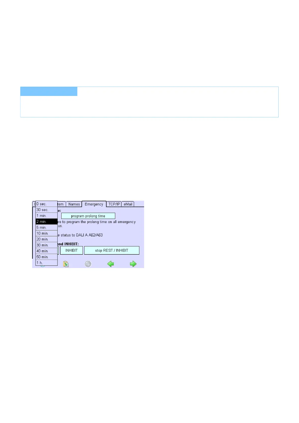 If necessary, emergency lighting operation can be prolonged by a maximum of one hour once the power has been