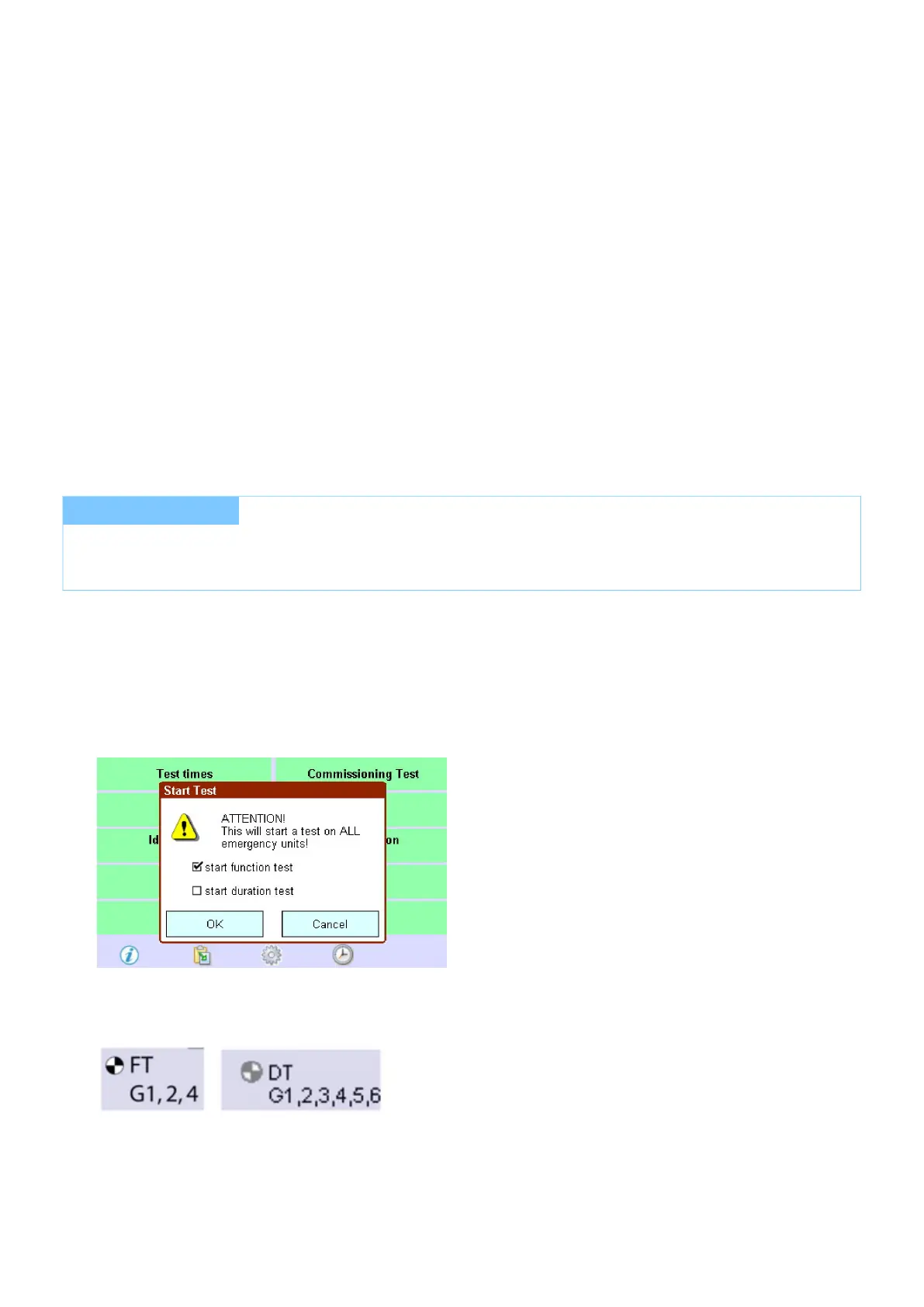During the test, the emergency units to be tested are switched on. A status line in the x/e-touchPANEL indicates the