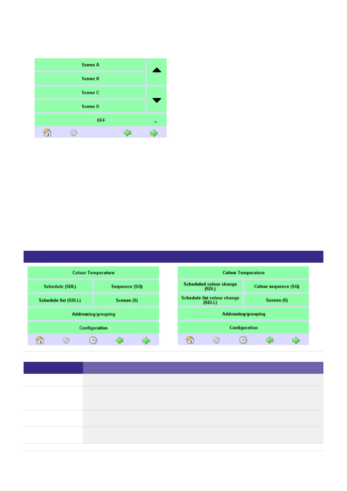 Click on the arrow keys as often is necessary until the desired lighting situation is displayed (e.g. scene).