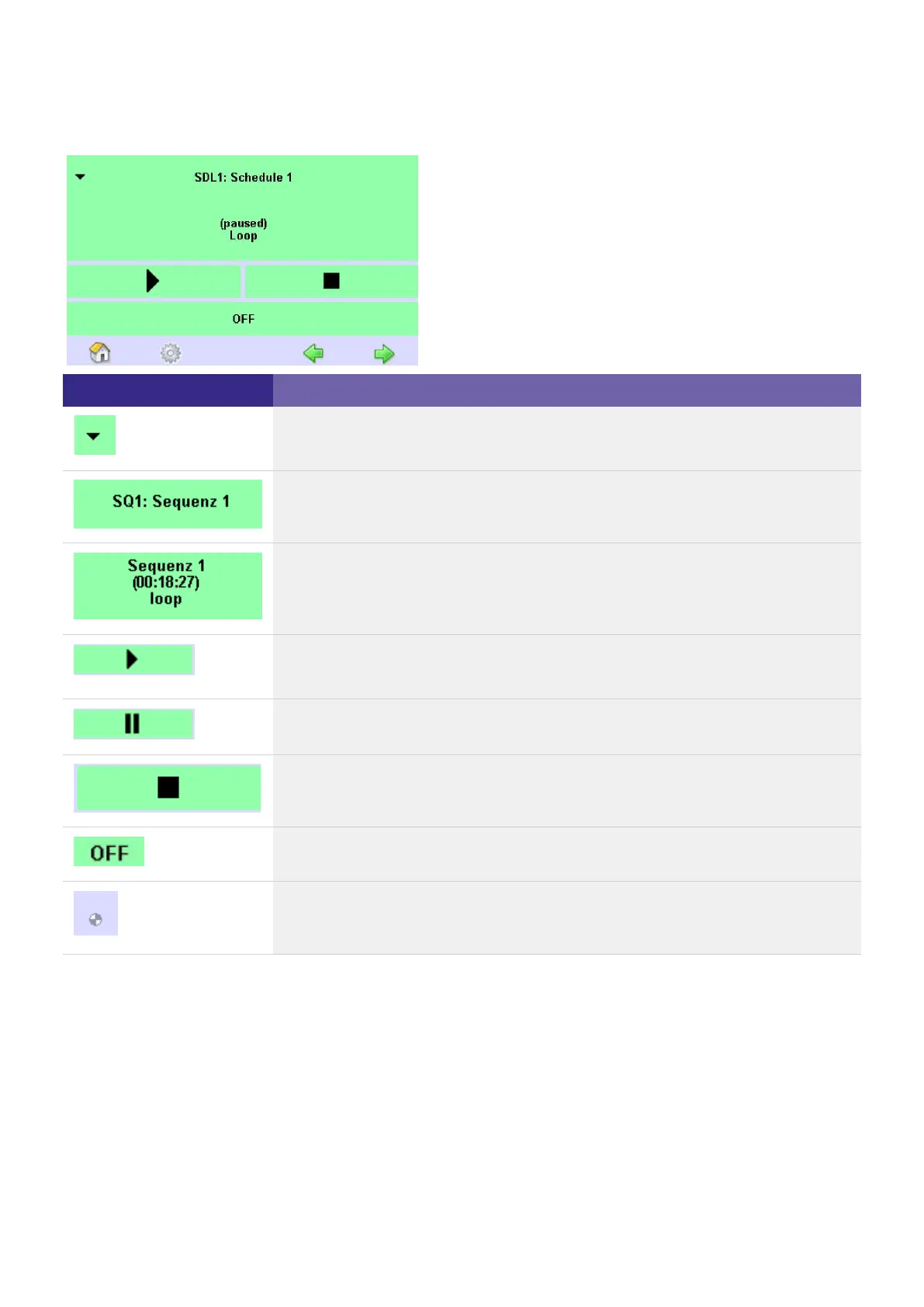 Shows the lighting situation that is called up using the Start/Pause, Stop and Off