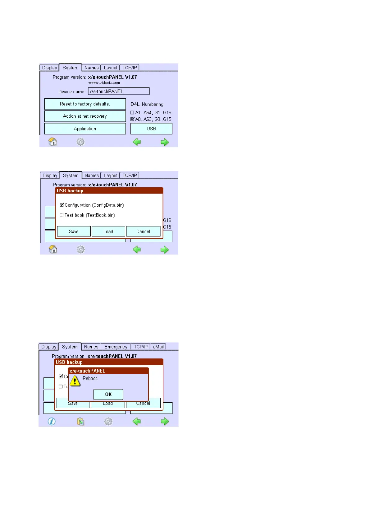 Activate checkbox "Configuration (ConfigData.bin)" to load configuration file to x/e-touchPANEL (all