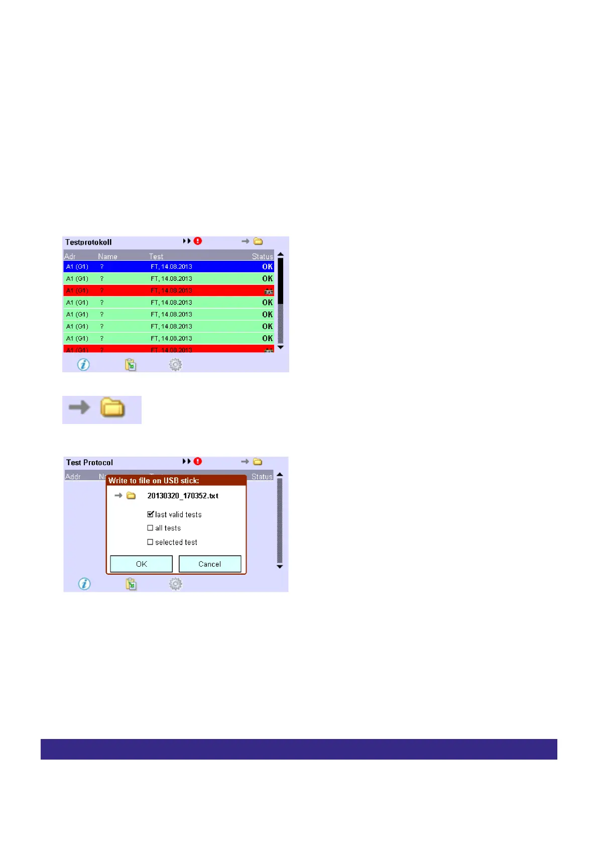 -> The dialog box "Write to file on USB stick:" is displayed.
