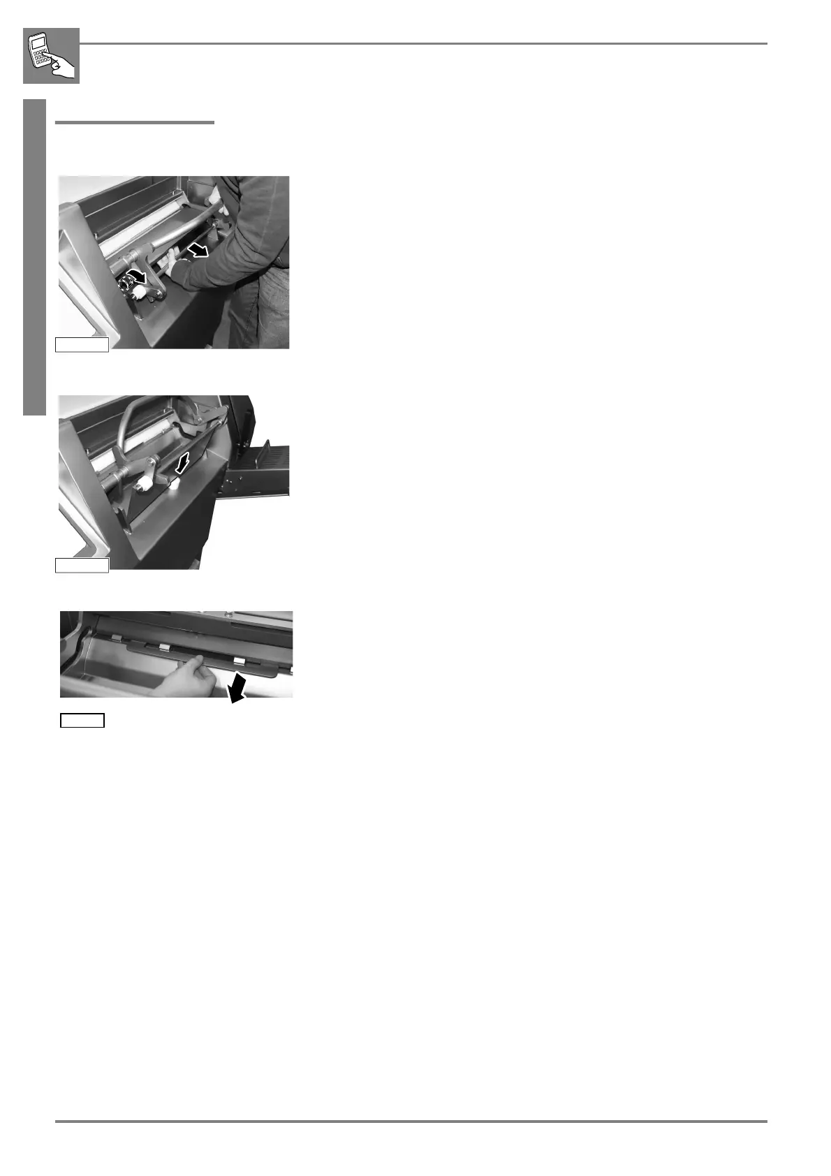 b Grip the cross bar and pull the separating knife to the front.