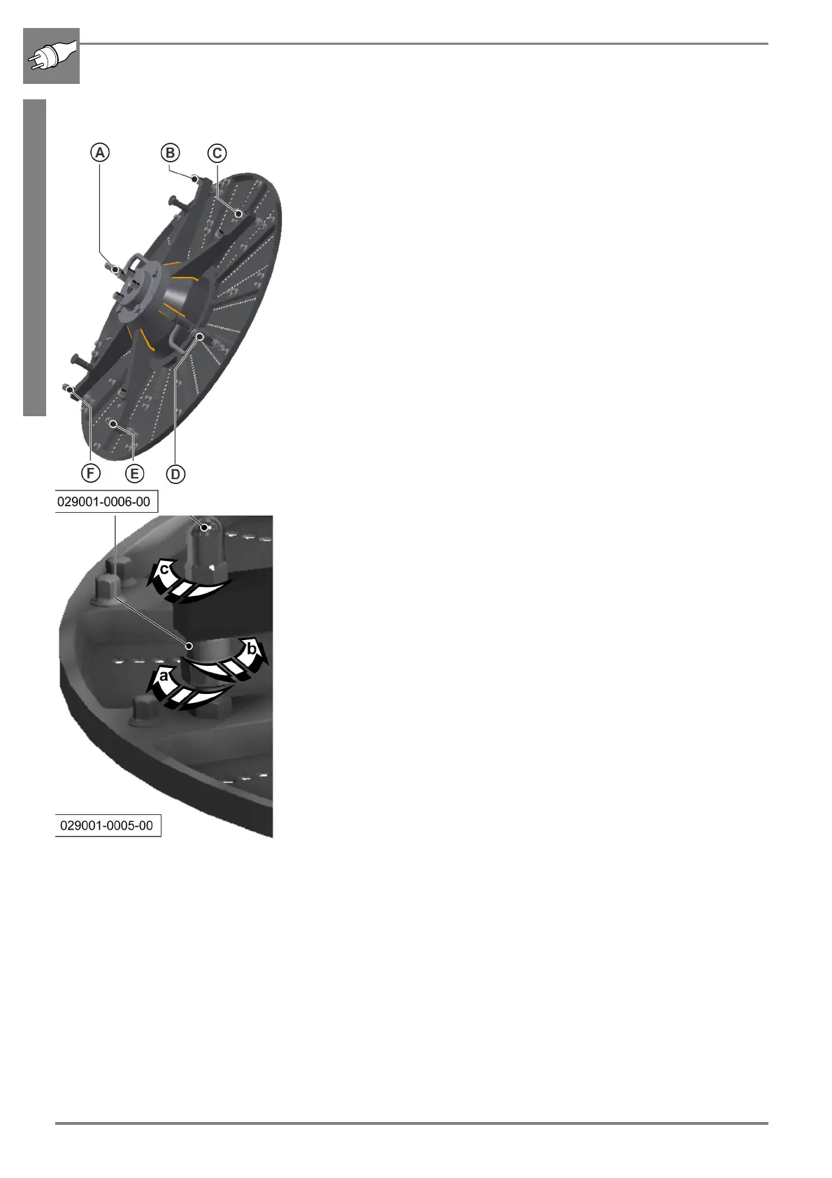 b Using the 6 outer lock nuts (A - F), the distance between the grating