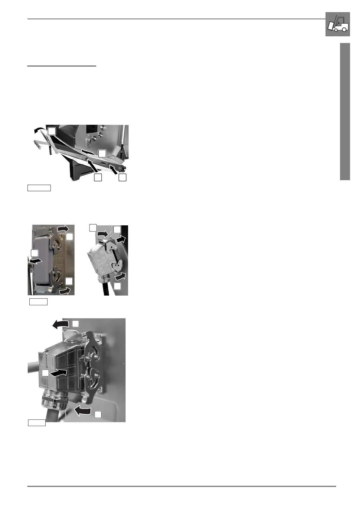 b Remove the covers on plug and socket; for this, first unlock the clamps