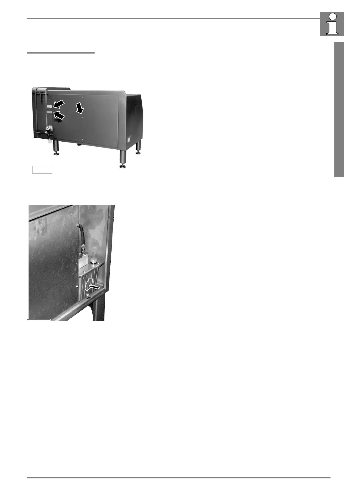 The information sign "Catch hydraulic oil“ is located on the oil tank.