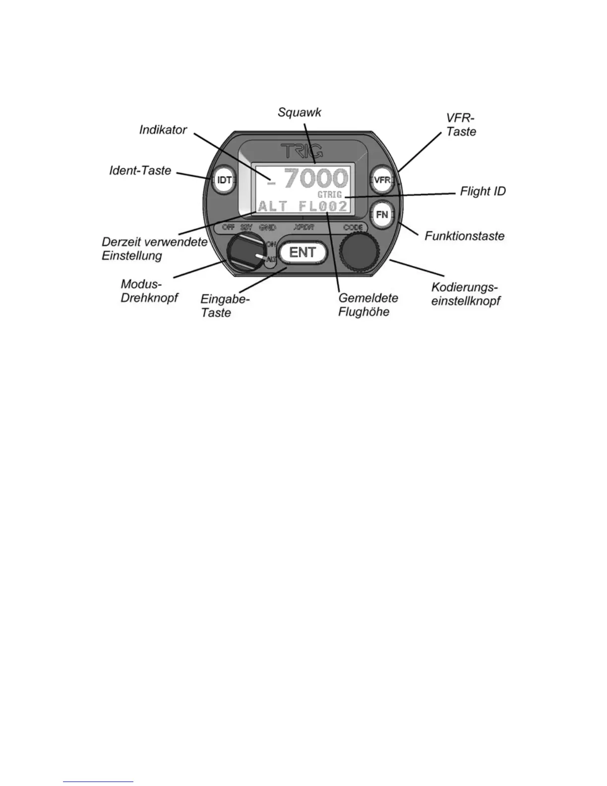 Das Display zeigt folgendes an: Den Modus des Transponders, die