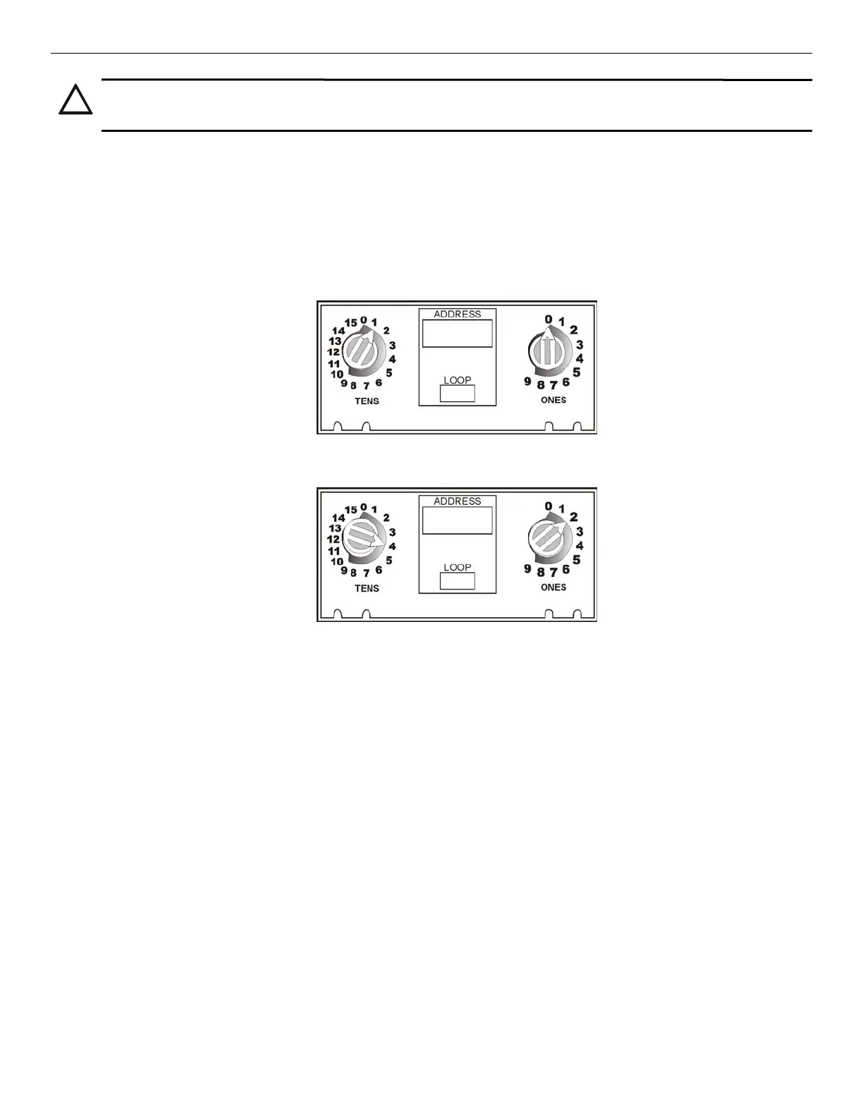 • Example 1: To select the device address 10, turn the ONES rotary dial to 0 and turn the TENS rotary dial to 1 as shown in