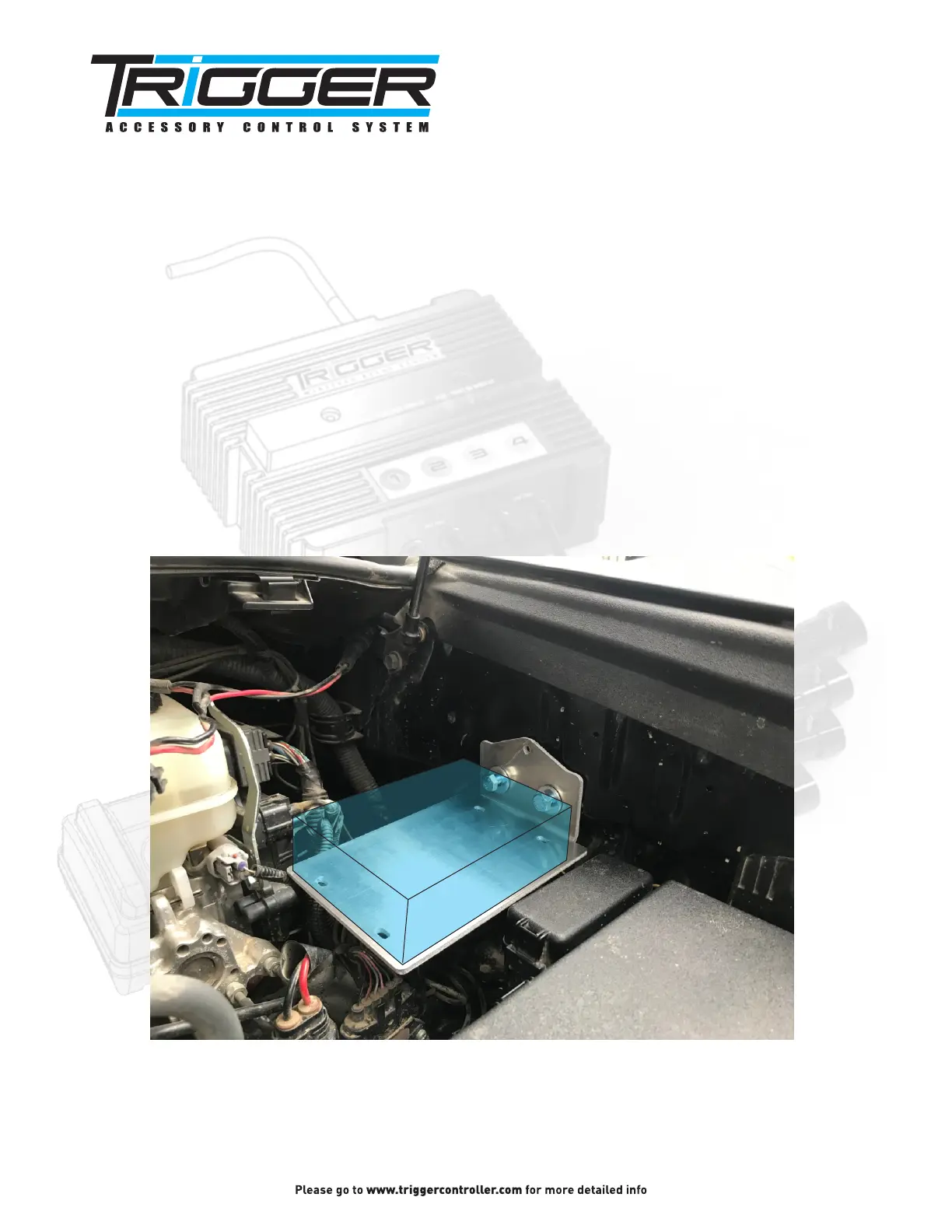 3) Install mount/Trigger onto the factory holes under the hood just behind the fuse box. See picture below for