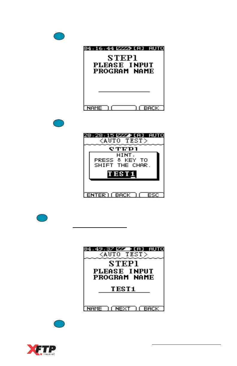 (NEW) key. The Auto test screen for STEP 1 appears.
