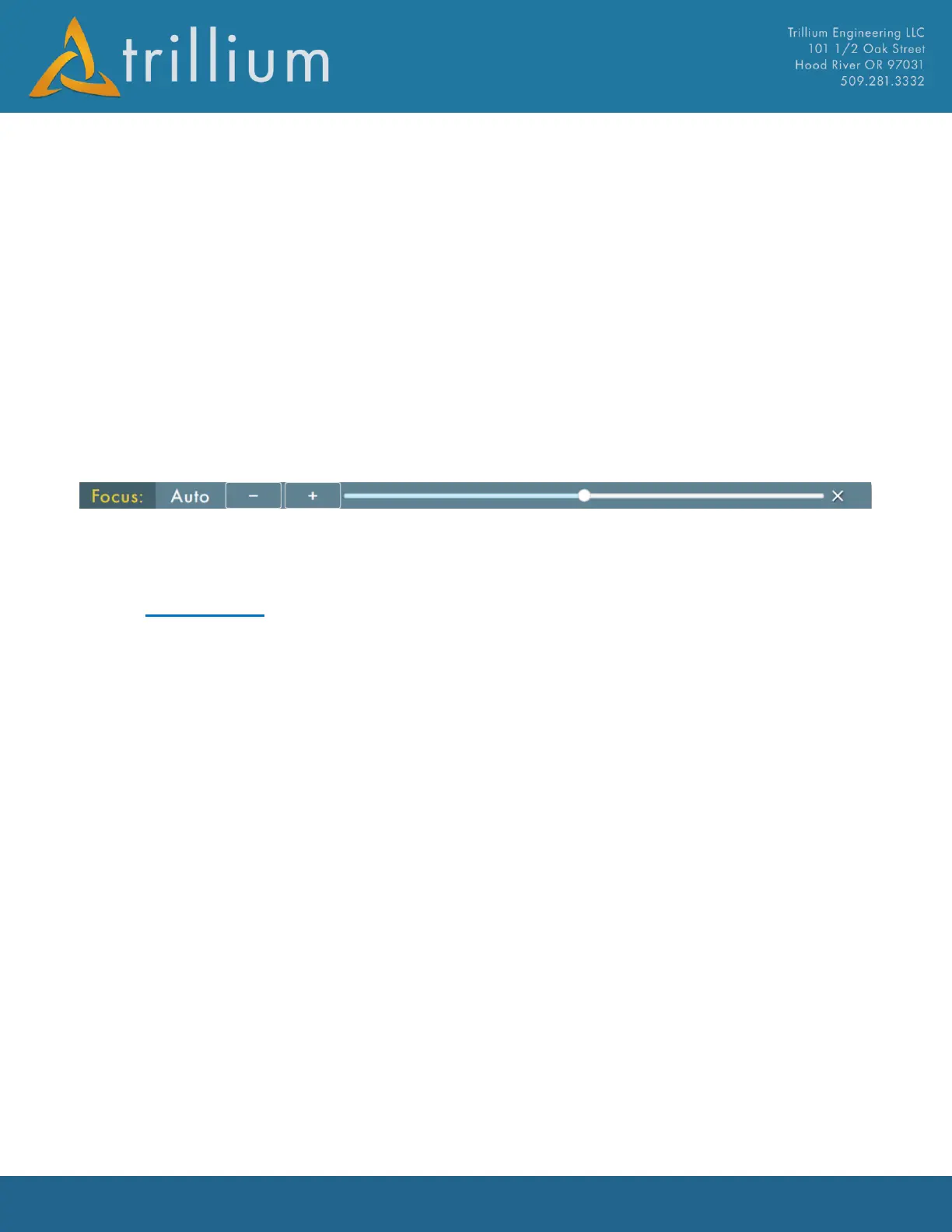The Focus control allows for focus adjustment to be made to the active camera. The (+/-) buttons