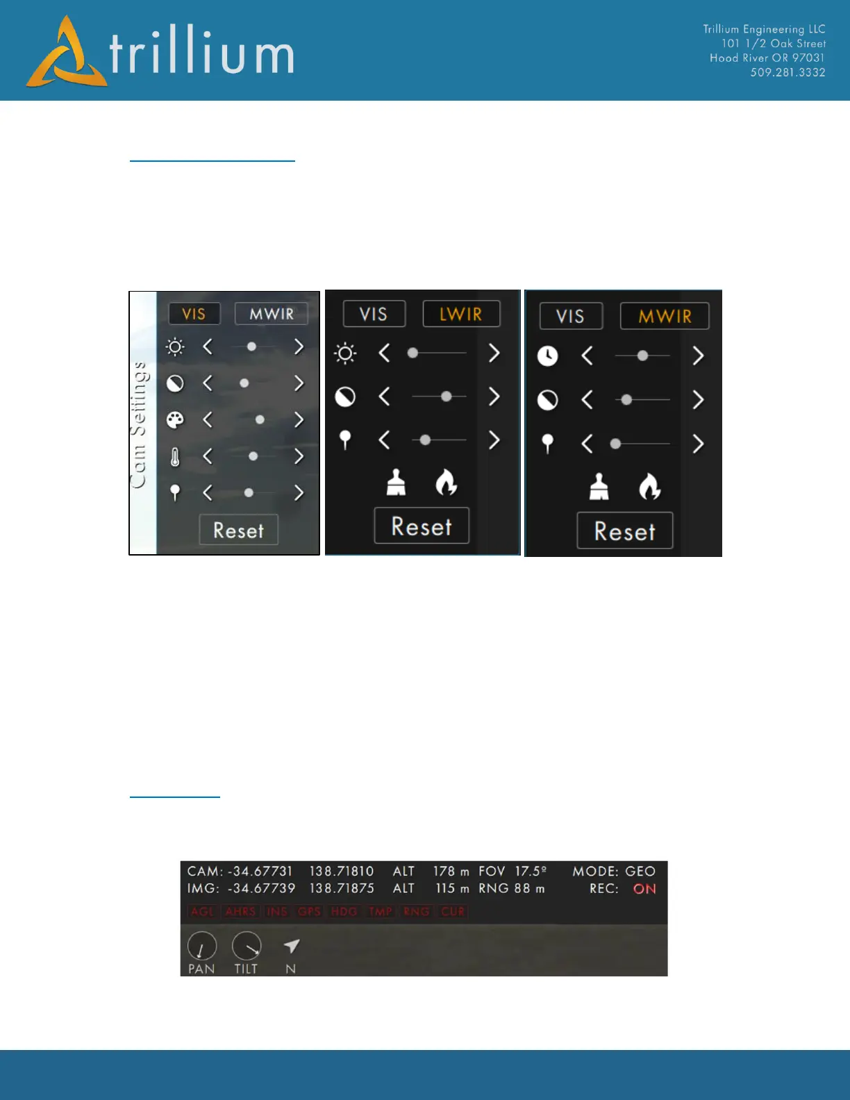 The Camera Settings Menu contains controls for refining the imagery from the active camera. Any