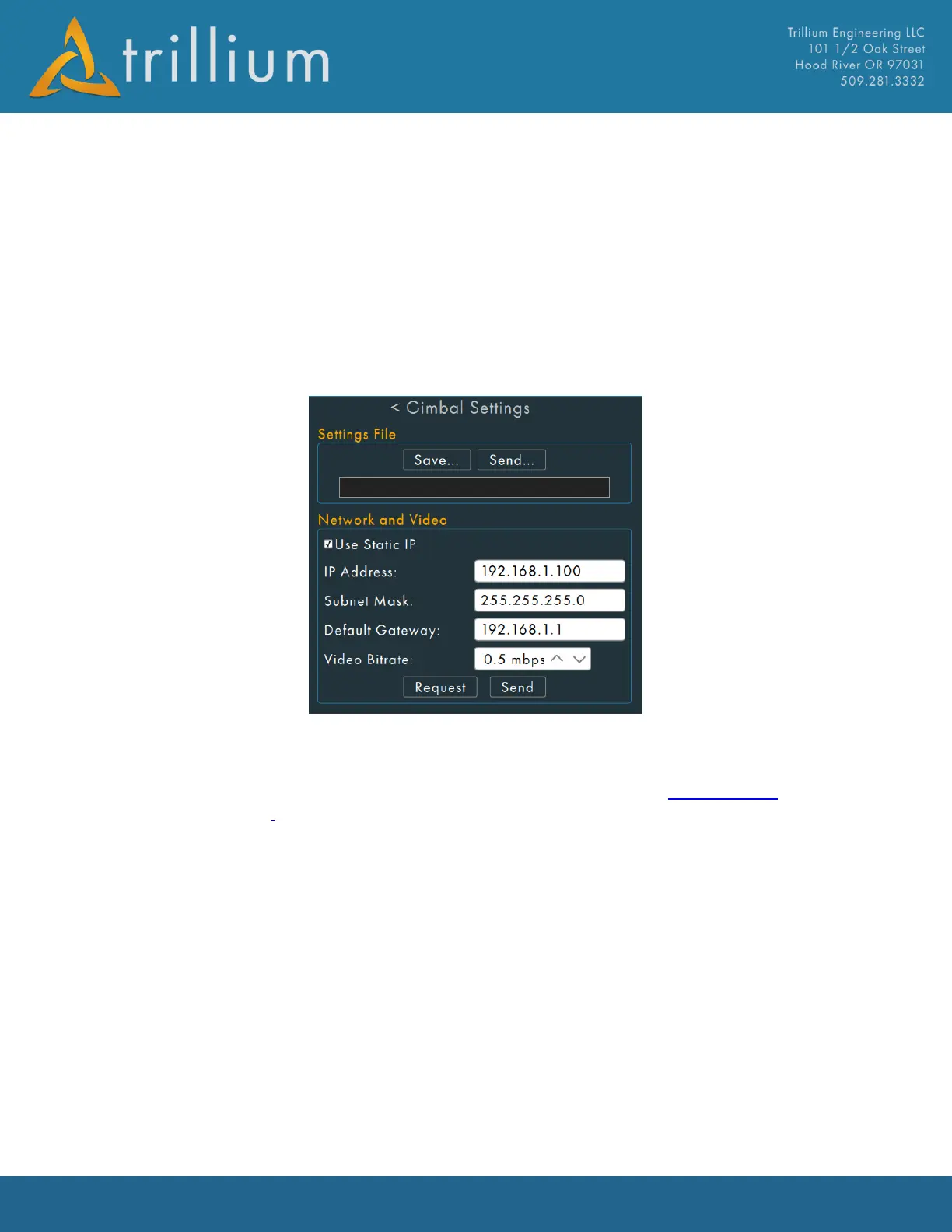 The Network section allows for a static IP address to be set for the gimbal or revert back to using