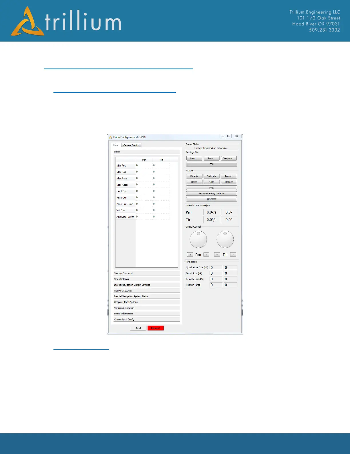 gimbal for their specific installation. OrionUI.exe is installed with the SkyLink installer to
