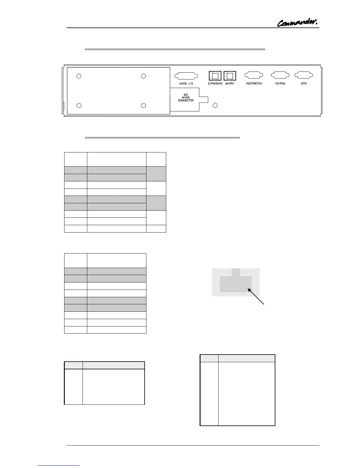 Trilogy Communications Commander - 500-3 X-5 X Series Standard Control Panel Rear View; 500-3 X-5 X Series Control Panel Connections