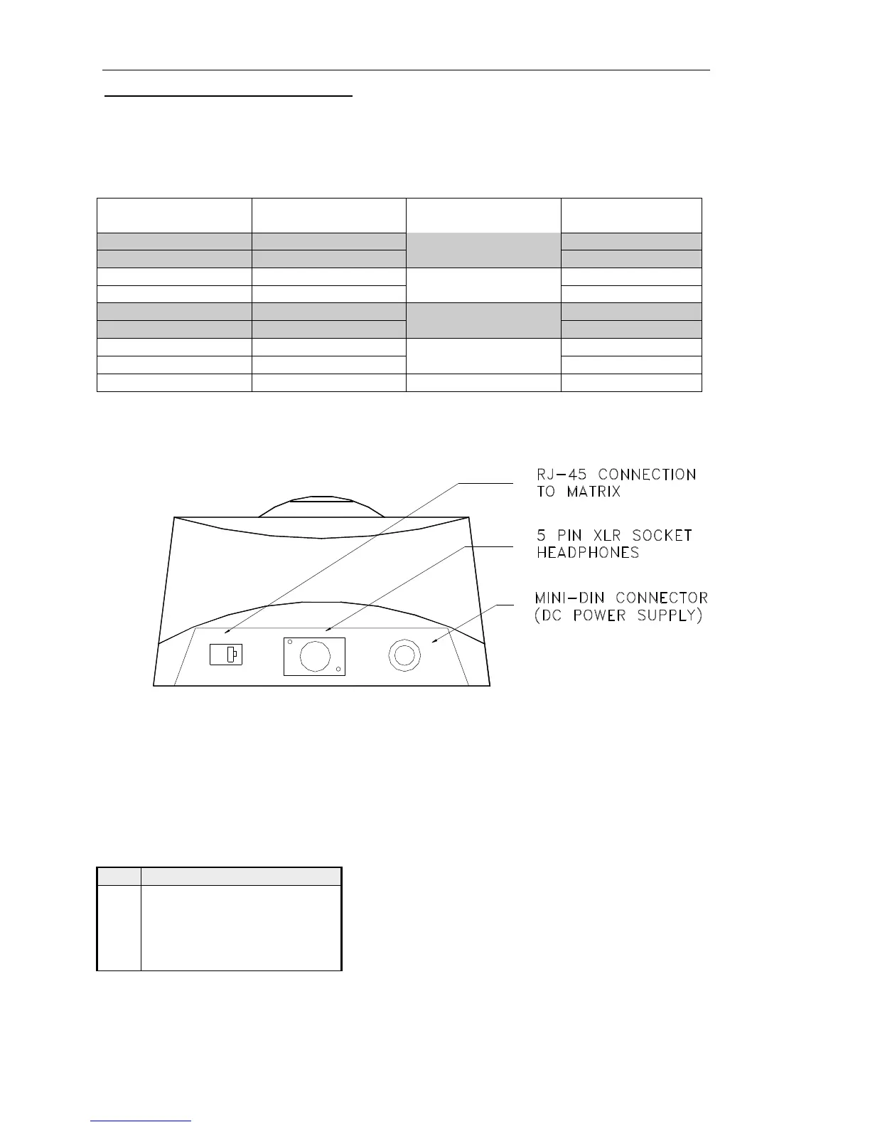 pin-out is given in the table below. To make a cable, use a 9-way plug at the matrix end. The
