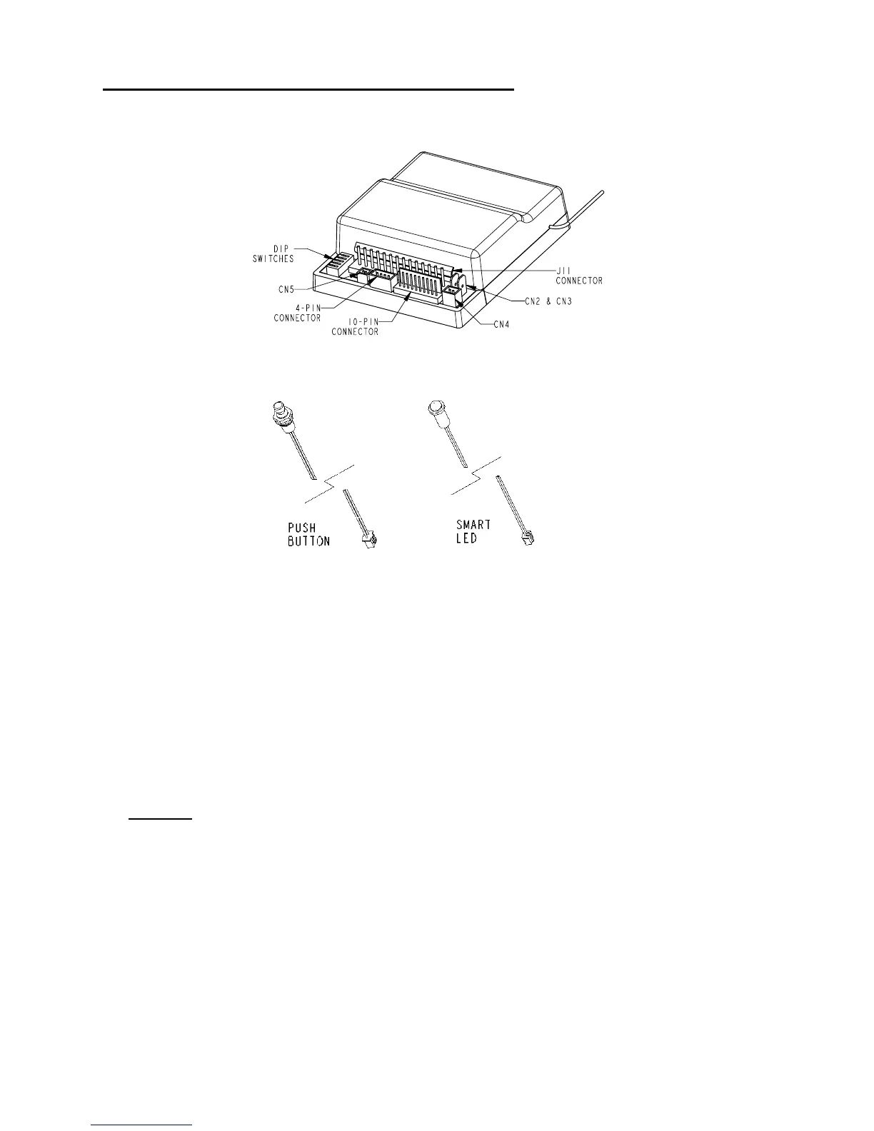 1. Plug the smart LED into CN4 and the push button into CN5.