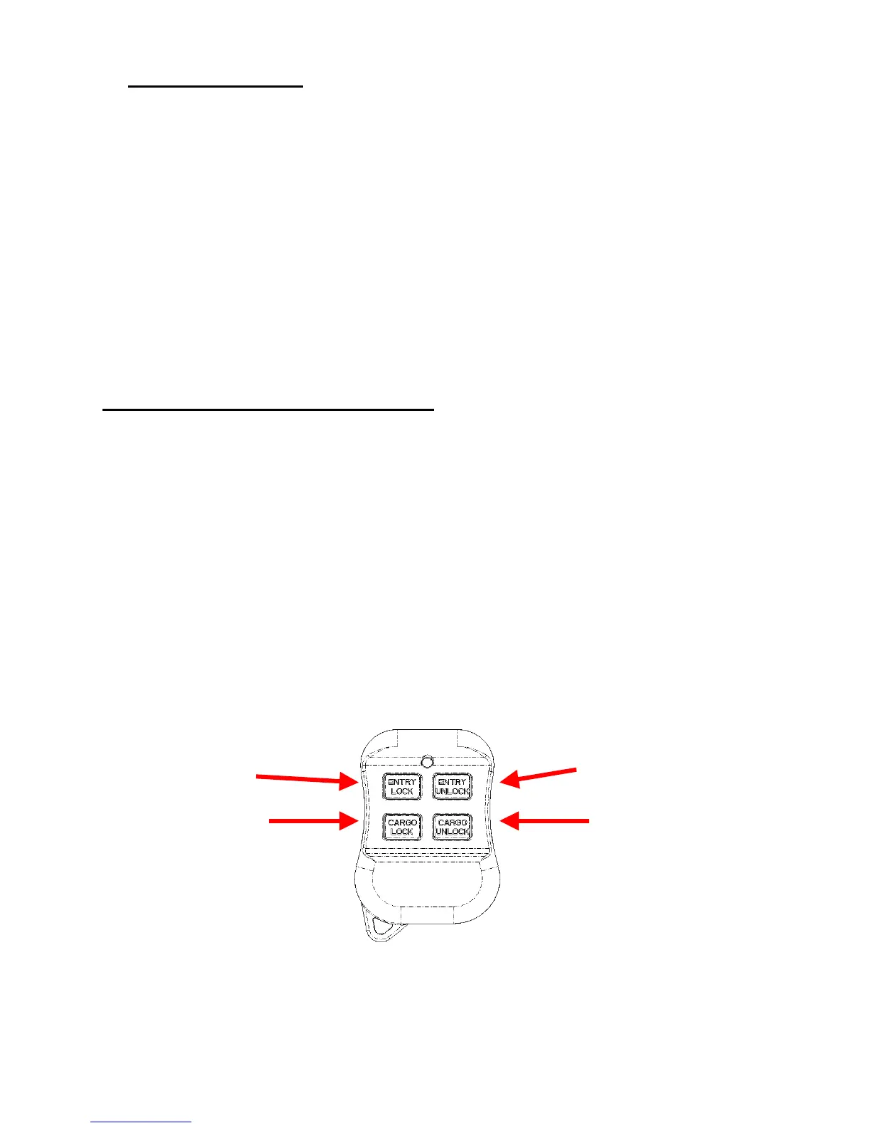 • Cargo Unlock: Unlocks all compartment doors and disarms security system. Also
