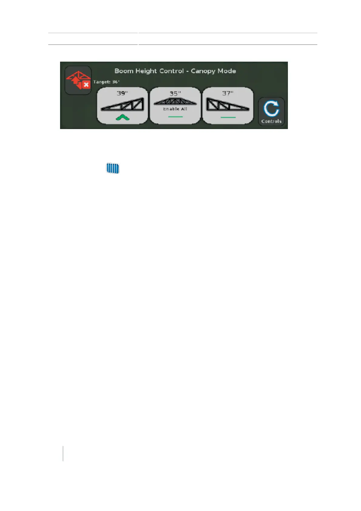 Note – If the center boom section is raised for 3 seconds using input from a joystick, Boom Height