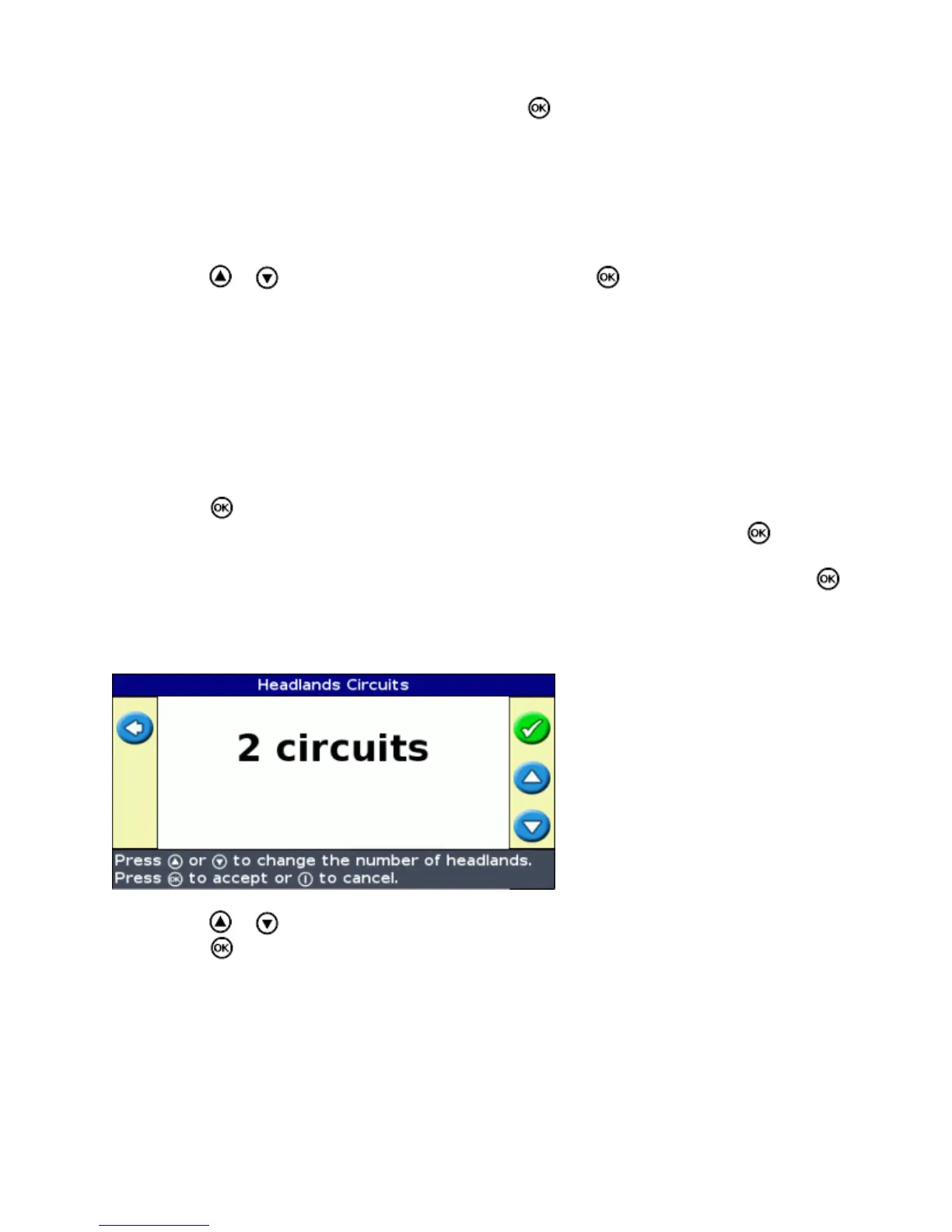 If you are loading a Headland, the Headlands Circuits screen appears: