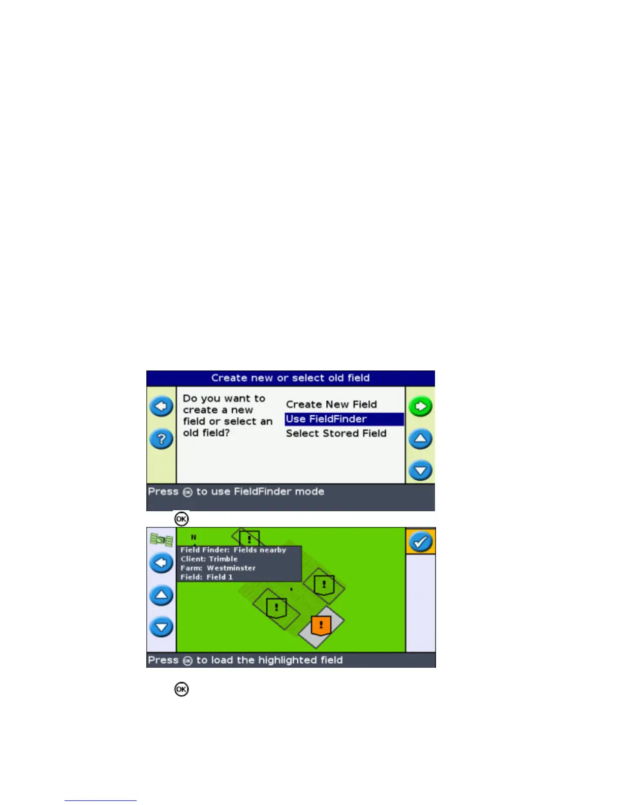 Note: The vehicle must be within 200 m of the field for it to appear on screen.