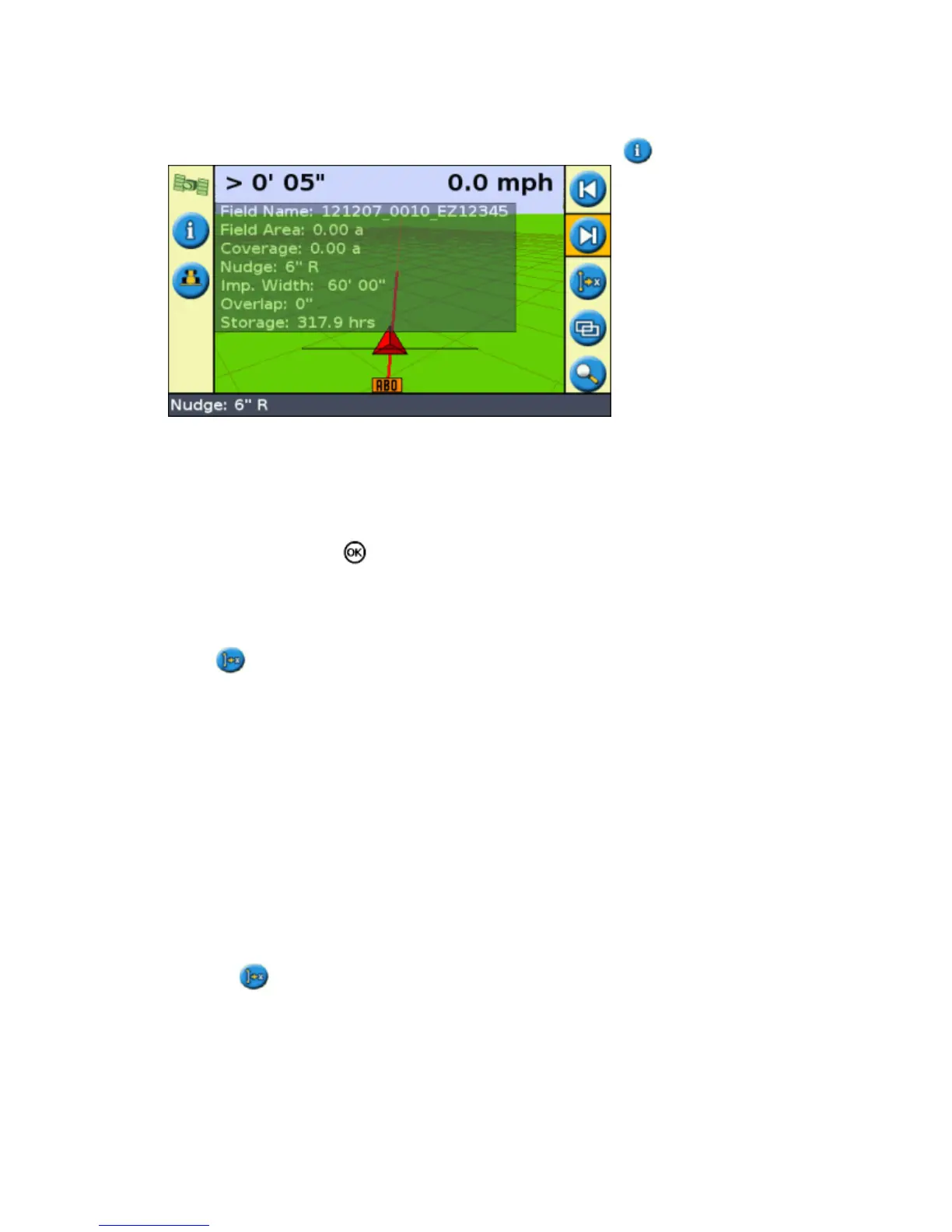 Note: If you are driving at an angle of more than 10 degrees from the current swath, an error message