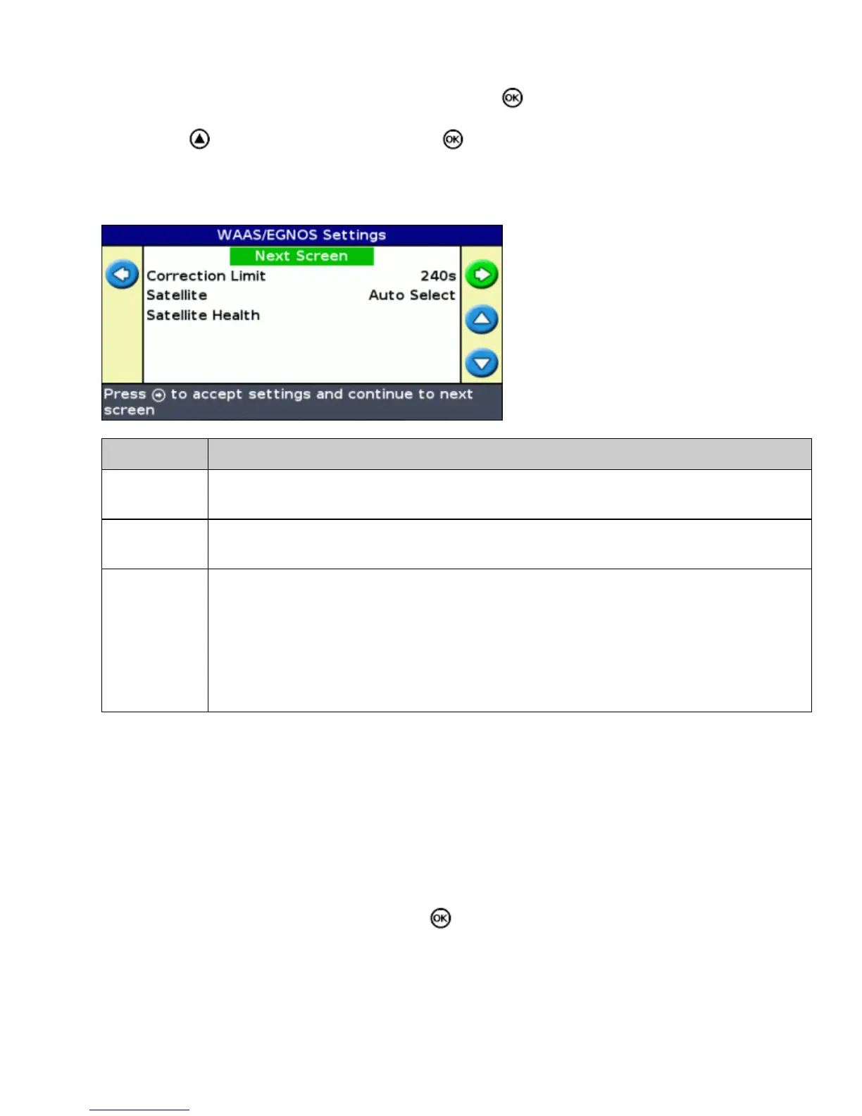 To configure WAAS or EGNOS corrections, set each of the fields on the WAAS/EGNOS Settings screen: