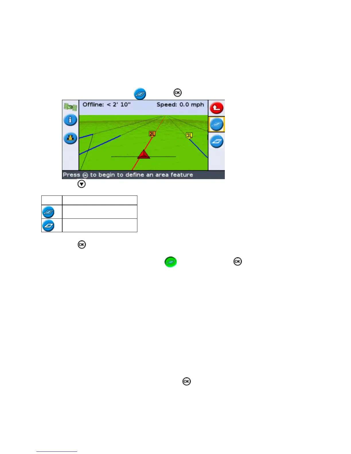From mapping mode, select and press . The area feature mapping icons appear.1.