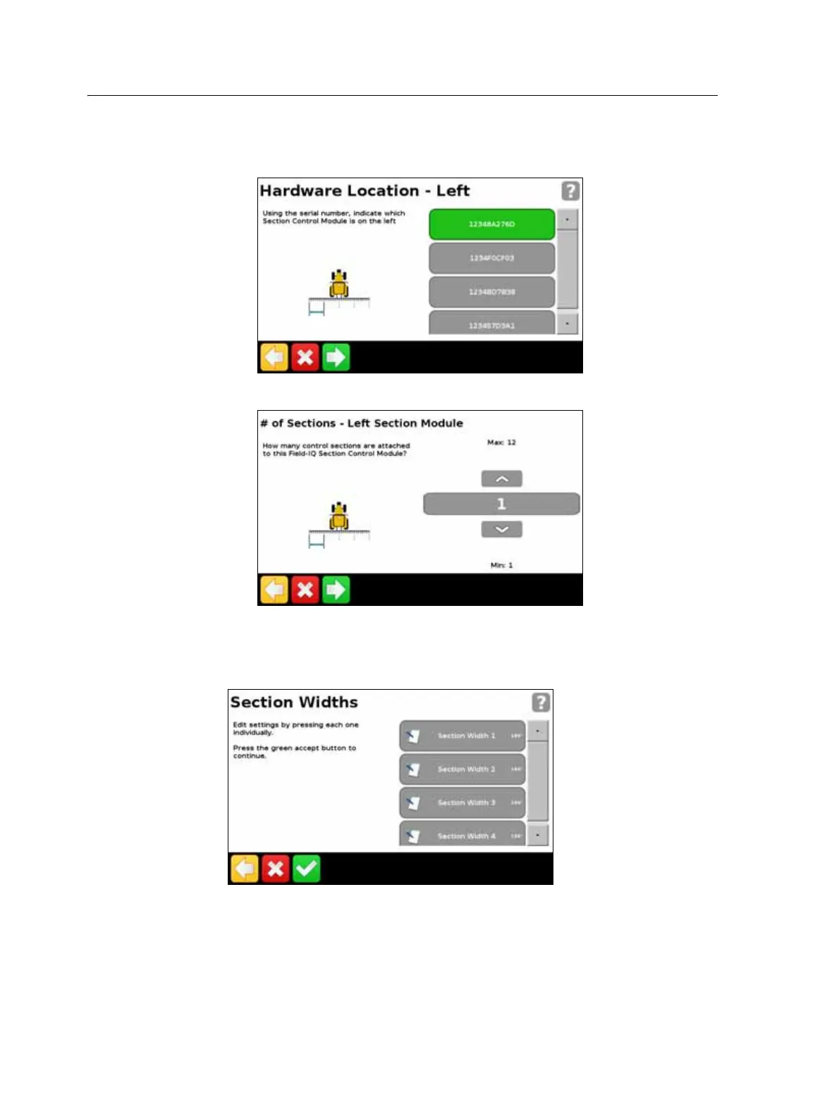 a. Where on your implement each module is located:
