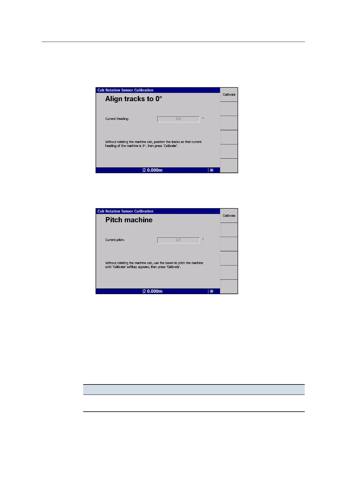 the excavator backwards until the Calibrate softkey appears: