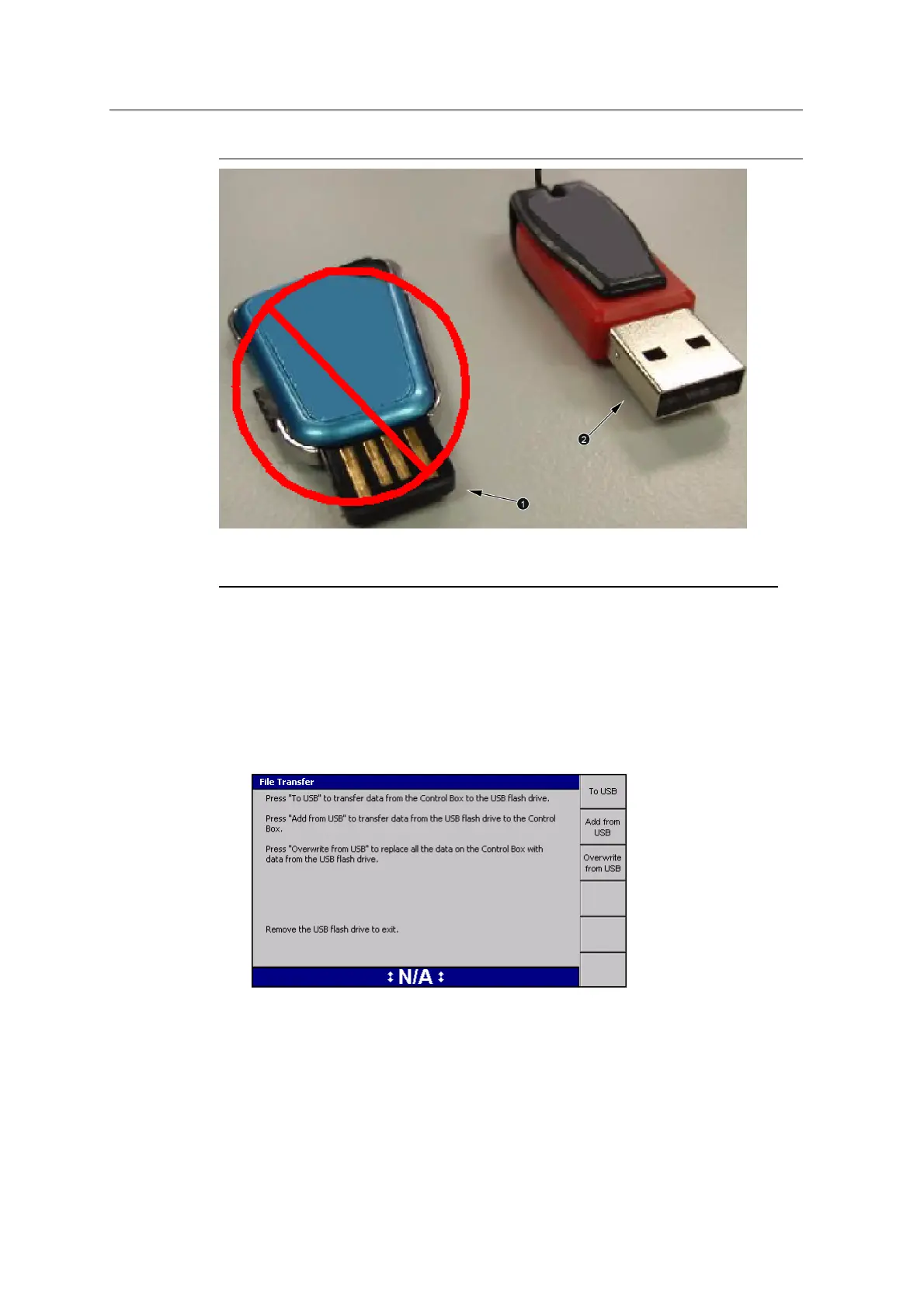2. Insert the USB flash drive into to the control box USB port. The File Transfer