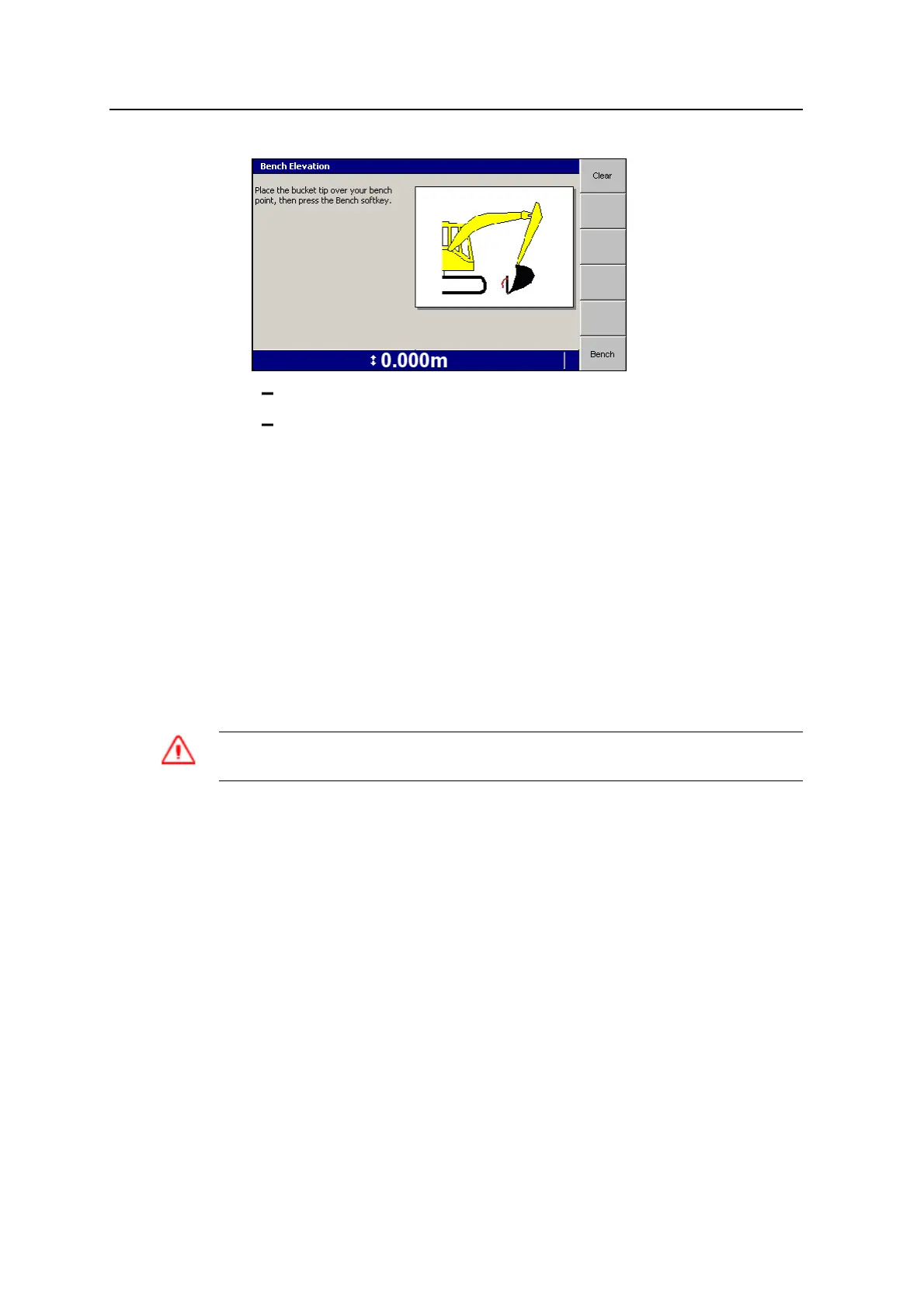 Press Bench to bench the system relative to the bucket tip.