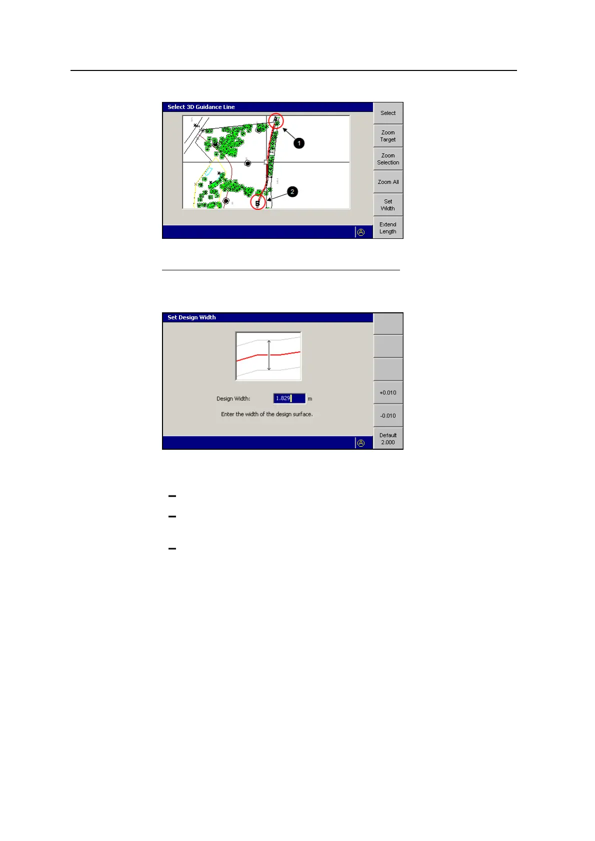 To set the width to 2.0m (6.5ft), press Default 2.000.