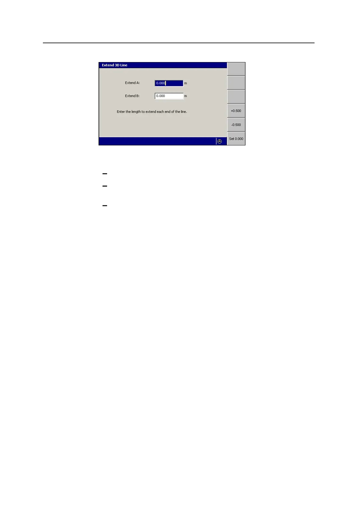To confirm the Extend 3D Line settings, press \; to exit without saving