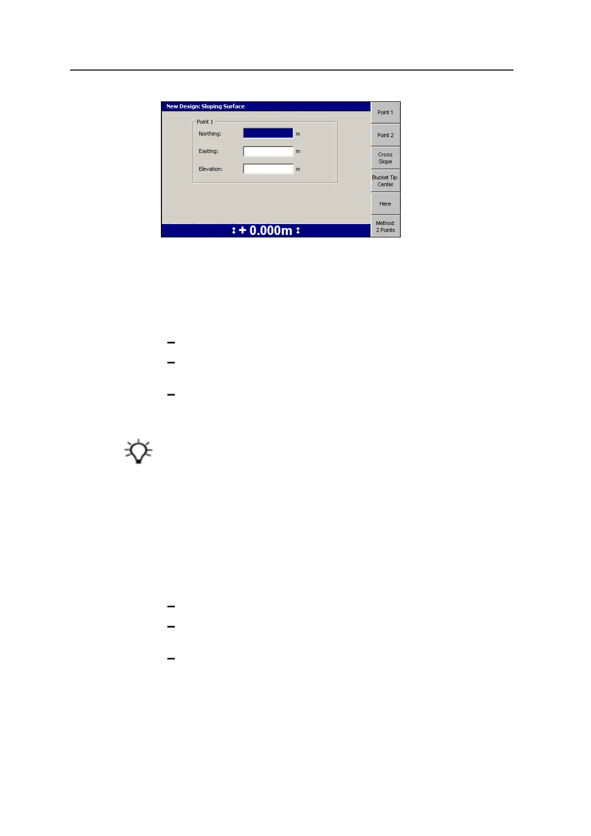 Tip – When both points are entered, the system calculates the direction and grade