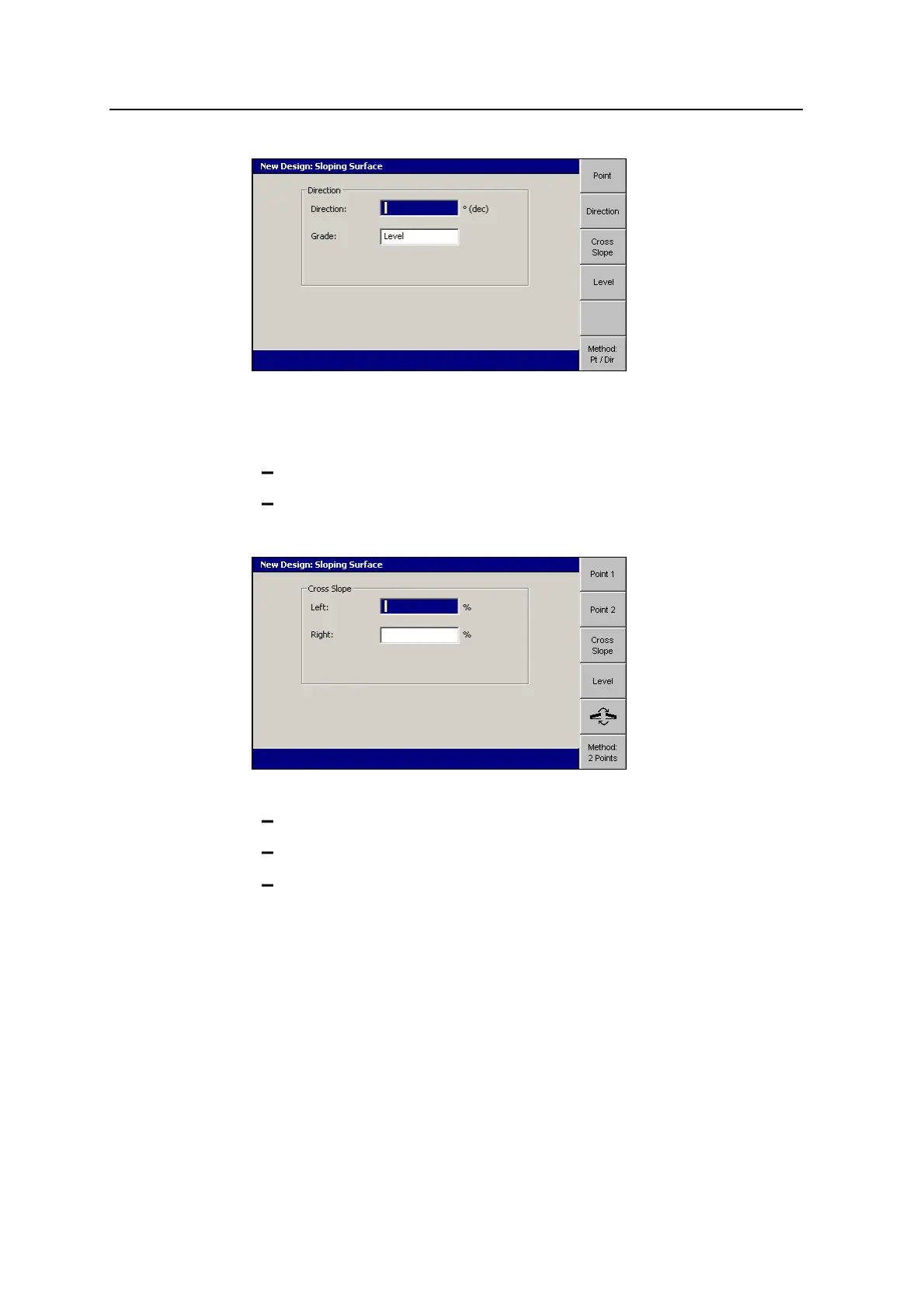 beside the cross slope fields indicate the direction of slope, as seen from