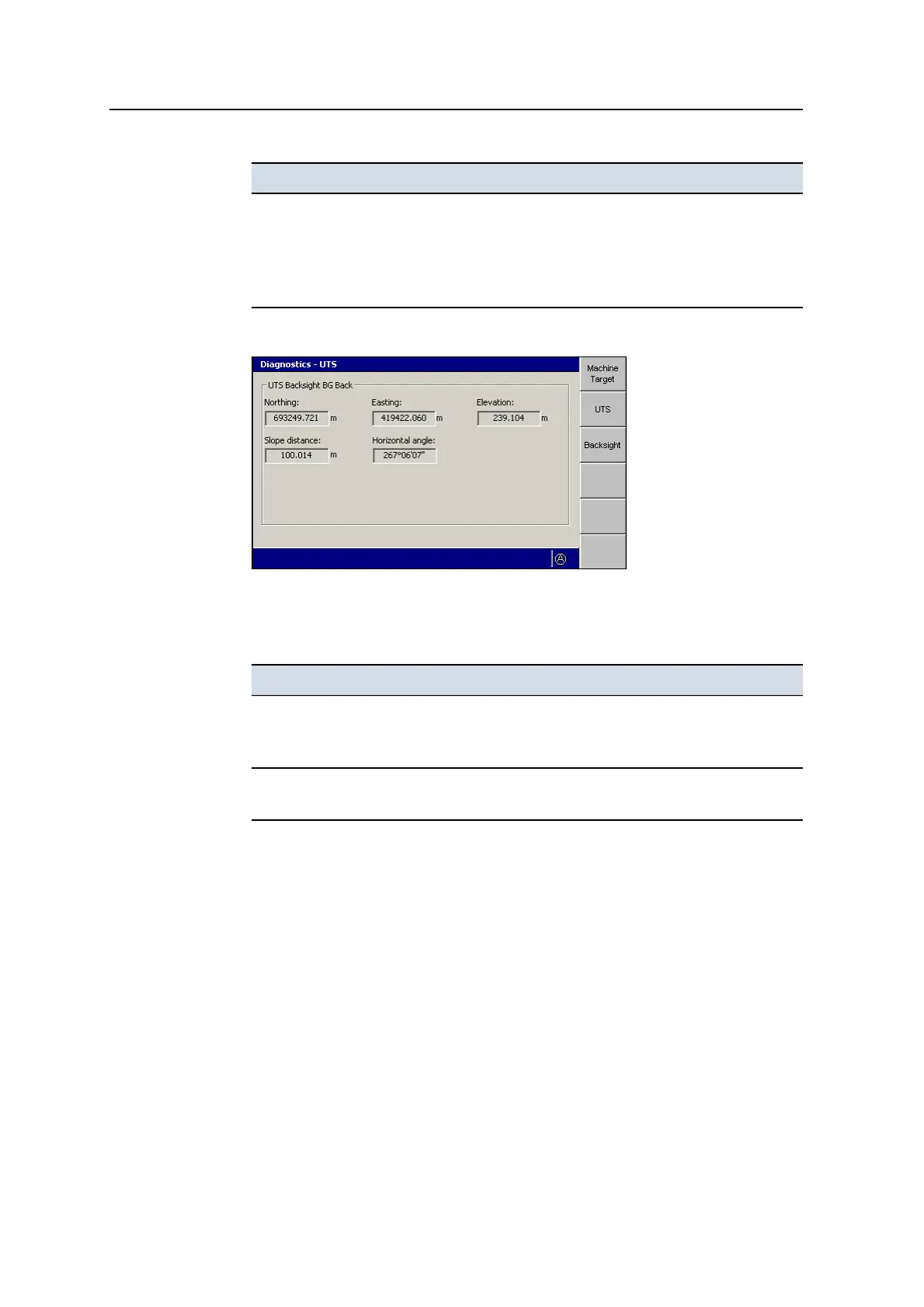 3. From any screen in the Diagnostics – UTS dialog, press Backsight.