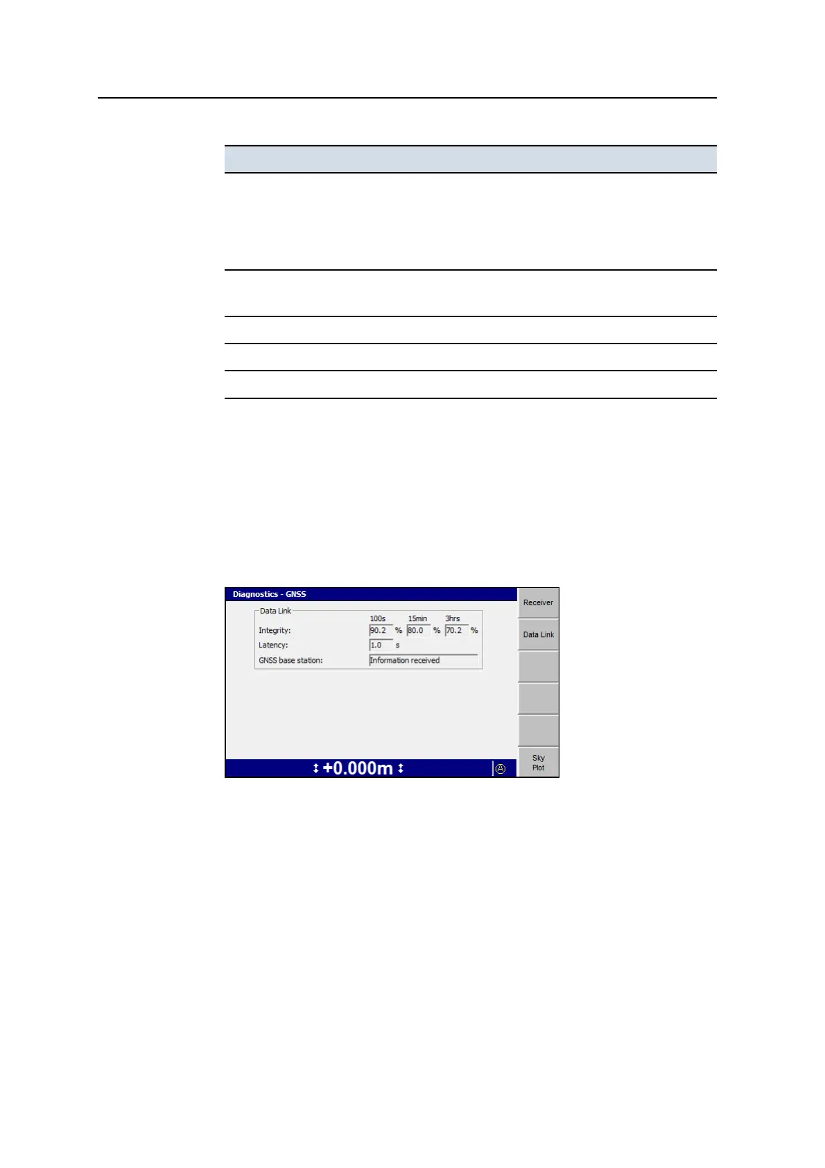 Note – The screen shown above is an example of a GNSS data link diagnostics
