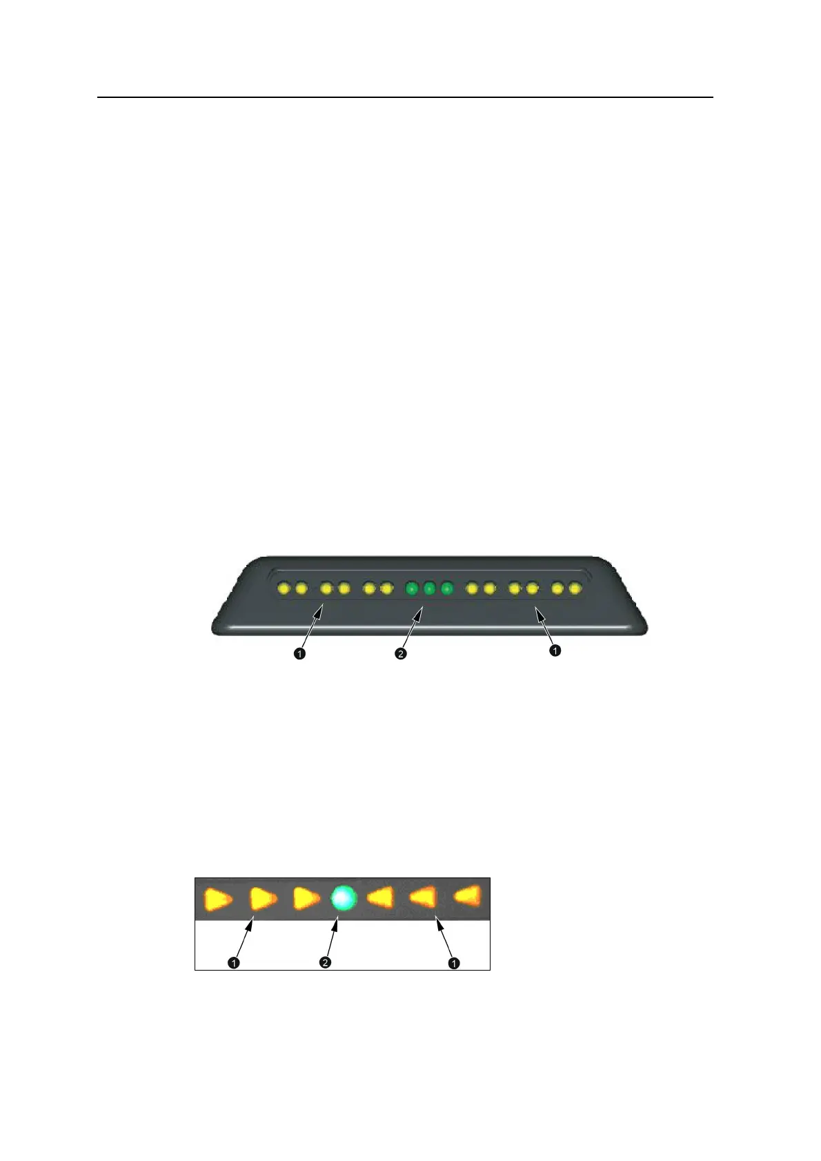 In each internal lightbar there are six amber LEDs (1) and one green LED (2), as