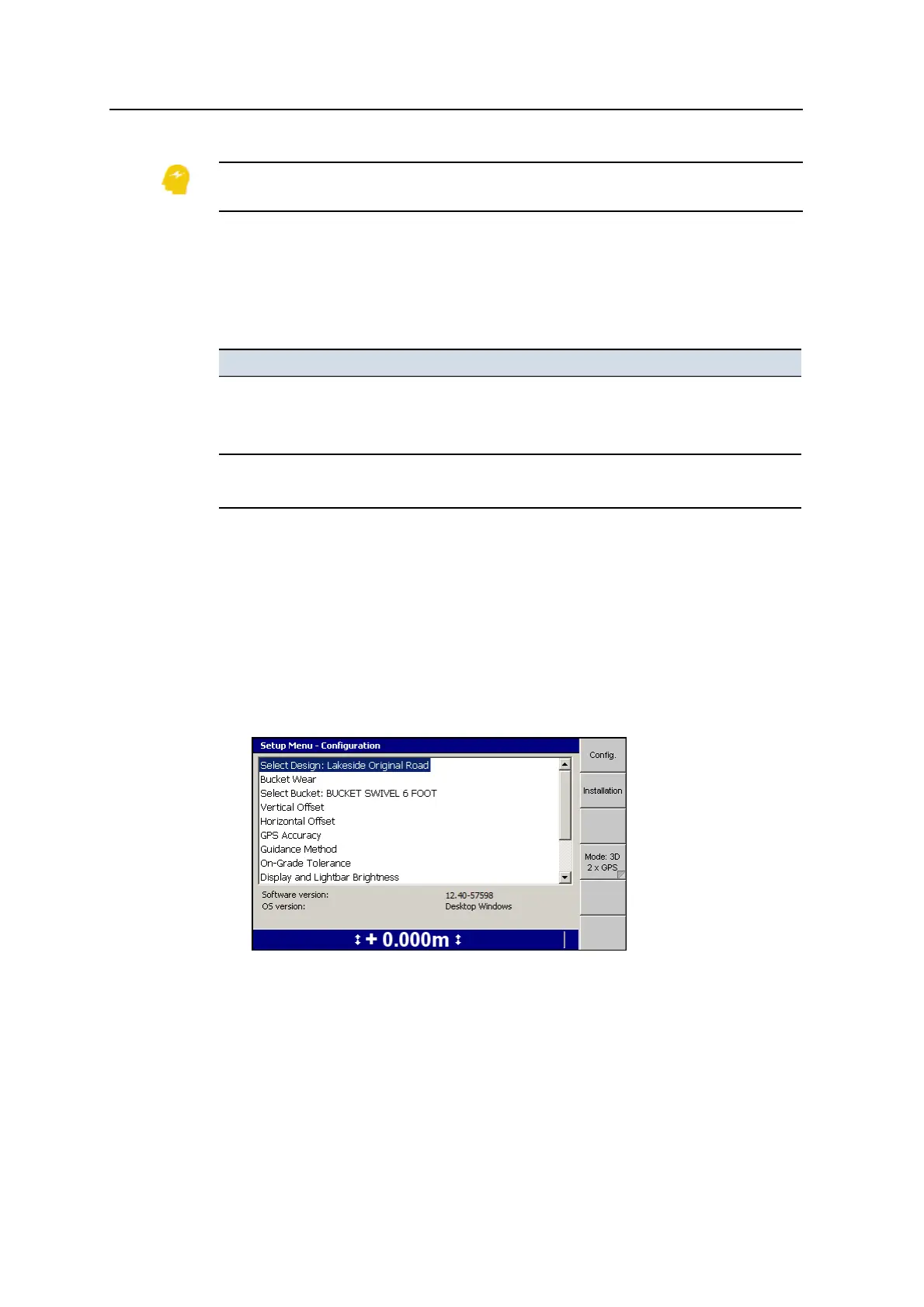 wear setting. To learn how to do this, see 3.3.9 Checking bucket wear.