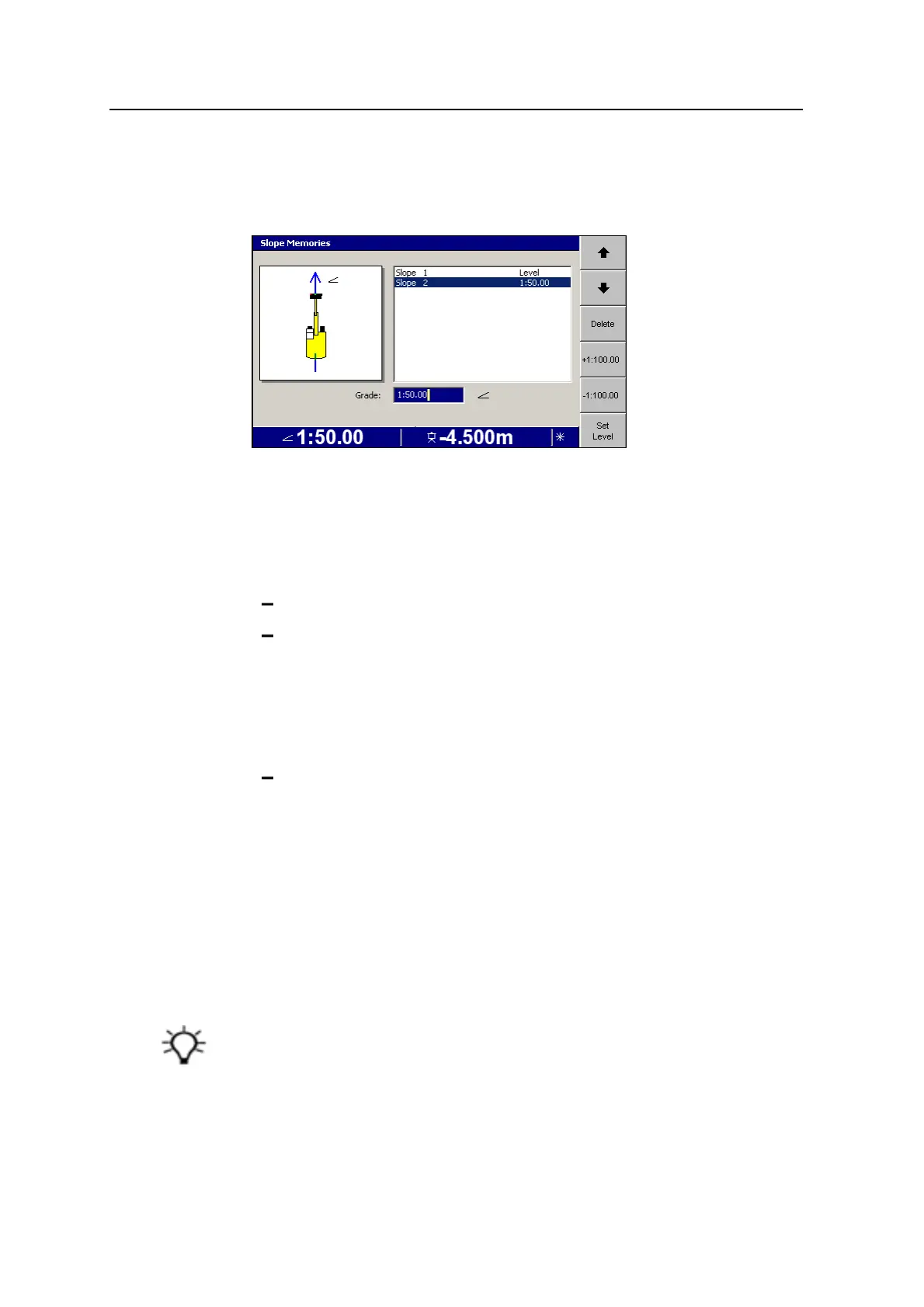 Note – You can also access Slope Memories by pressing Slope Memories from