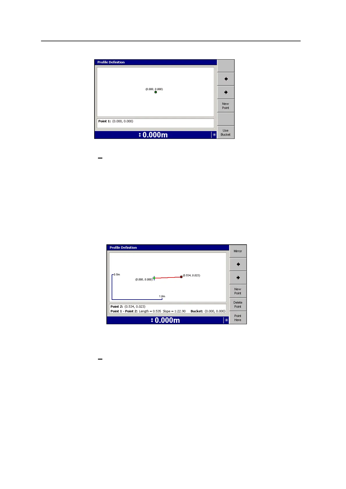 To add a line segment to the profile, press New Point. A new point appears