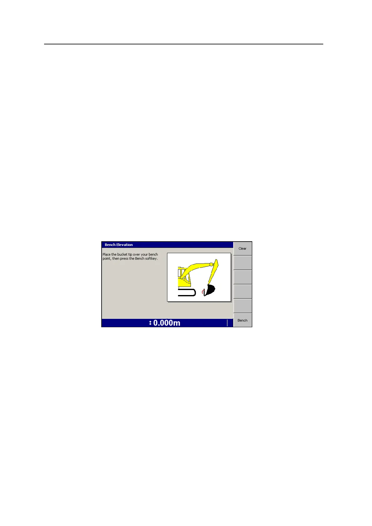 l To bench the system using the current bucket elevation press Bench Elevation.