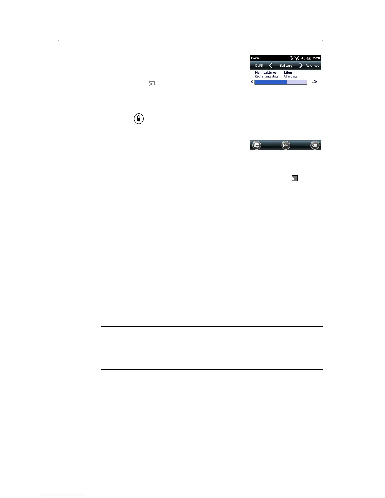 external power source, the battery icon in the Home