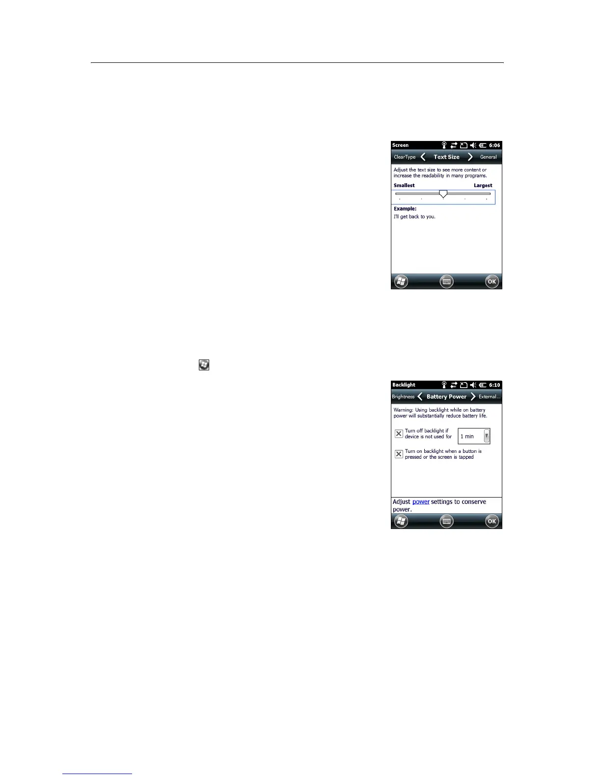the Backlight control to configure power-saving settings for the backlight. To open the