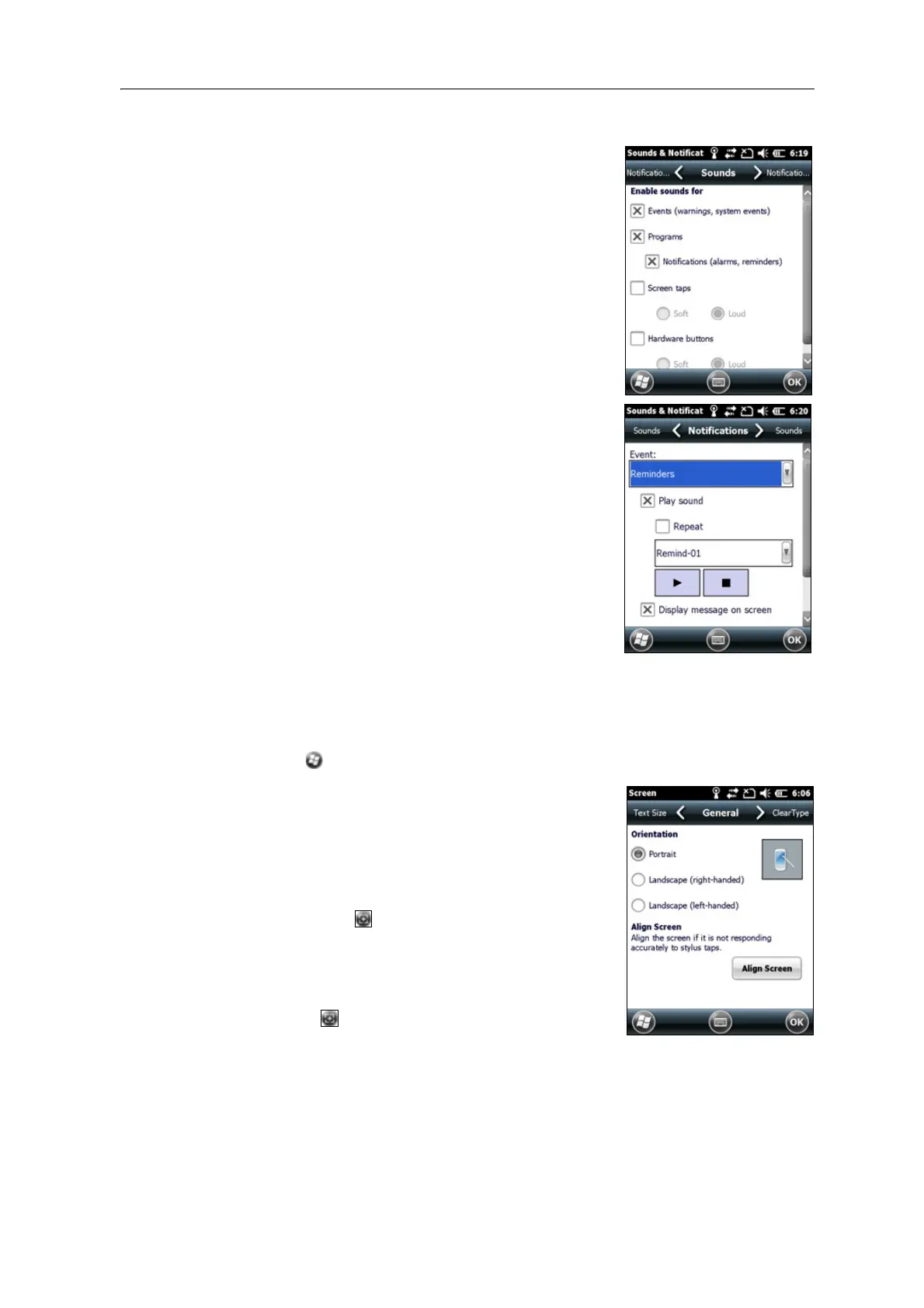 Use the Screen control to align the touch screen or to change the appearance of text on